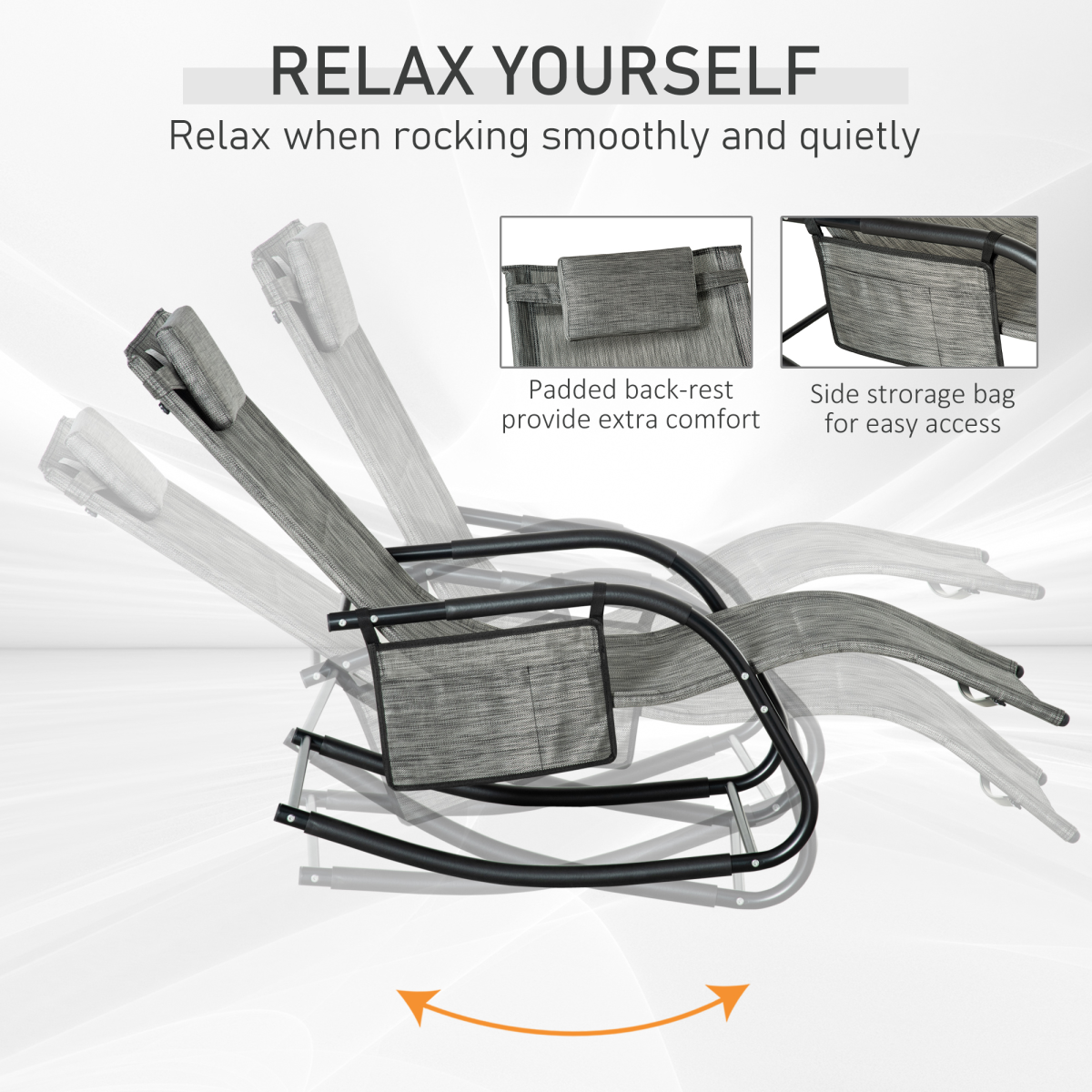 Breathable Mesh Rocking Chair Recliner Seat & Removable Headrest Dark Grey Sun