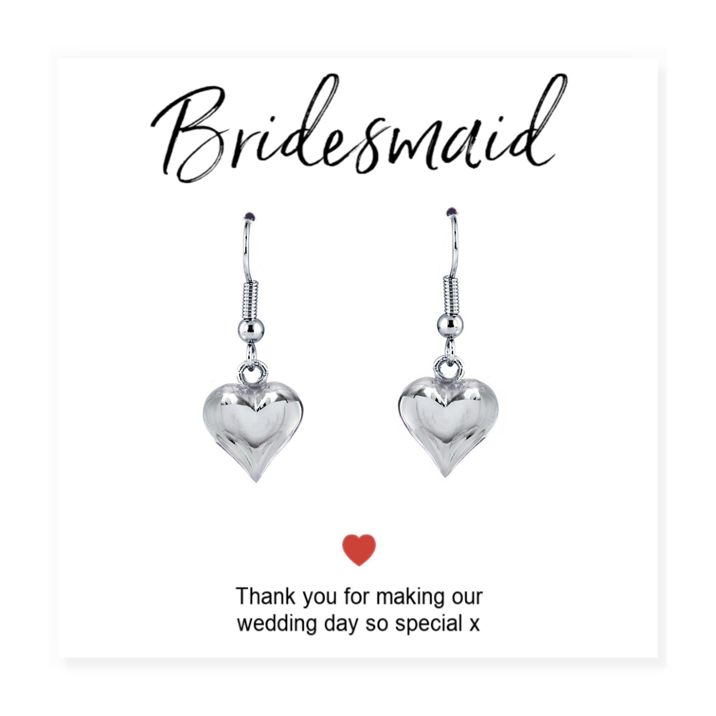Our bridesmaid earrings are a lovely gift for your special maids as it comes with a puff heart and are presented on a message card with the words "thank you for making our wedding day so special" and also has a small space for you write a little note or it can also be left blank which in turn is sent in a black gift box.