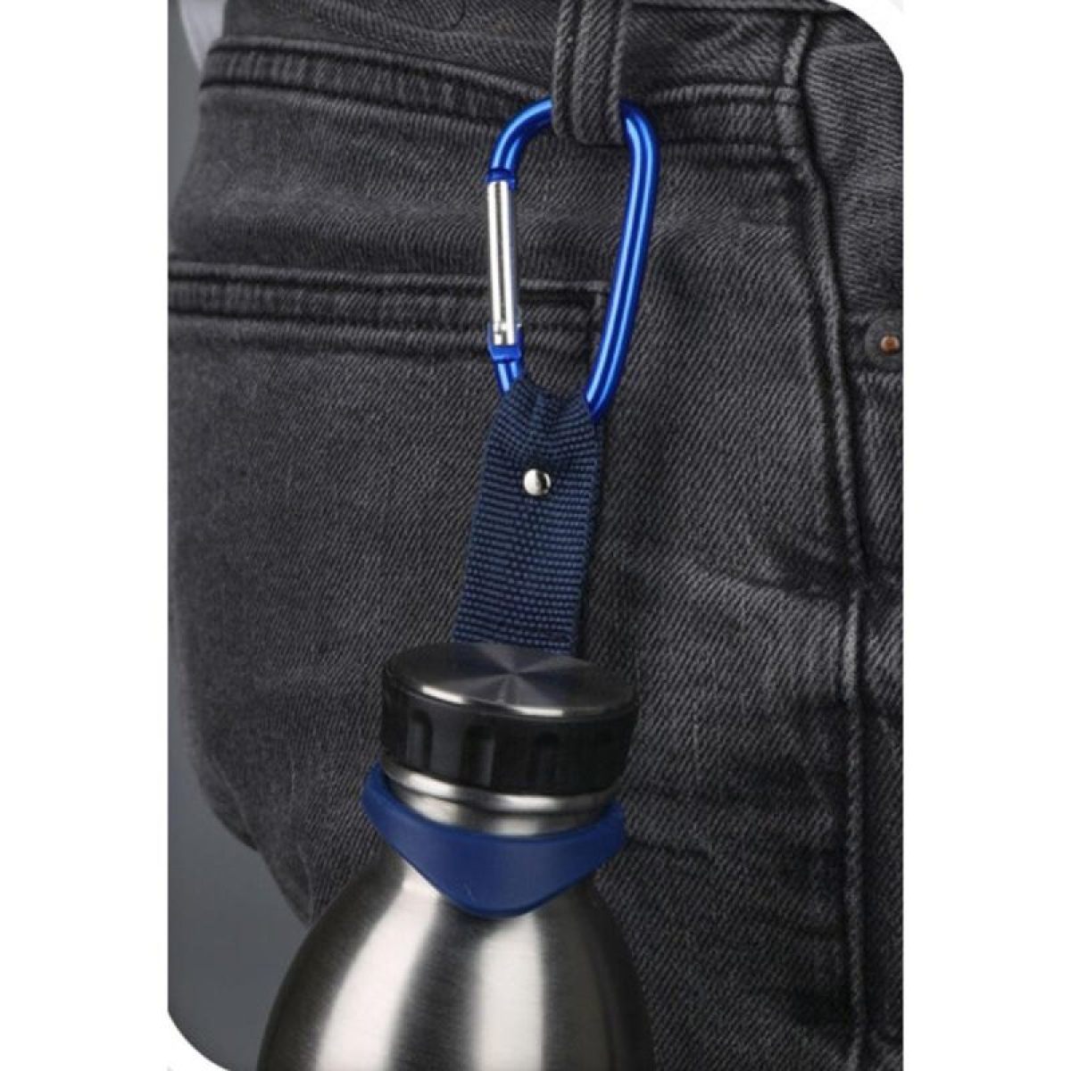 The carabiner is incredibly easy to use – simply insert the bottle neck into the holder and clip it to your chosen location. The locking mechanism operates smoothly and securely. This solution is designed for comfort in any situation – from a walk to a mountain trail.