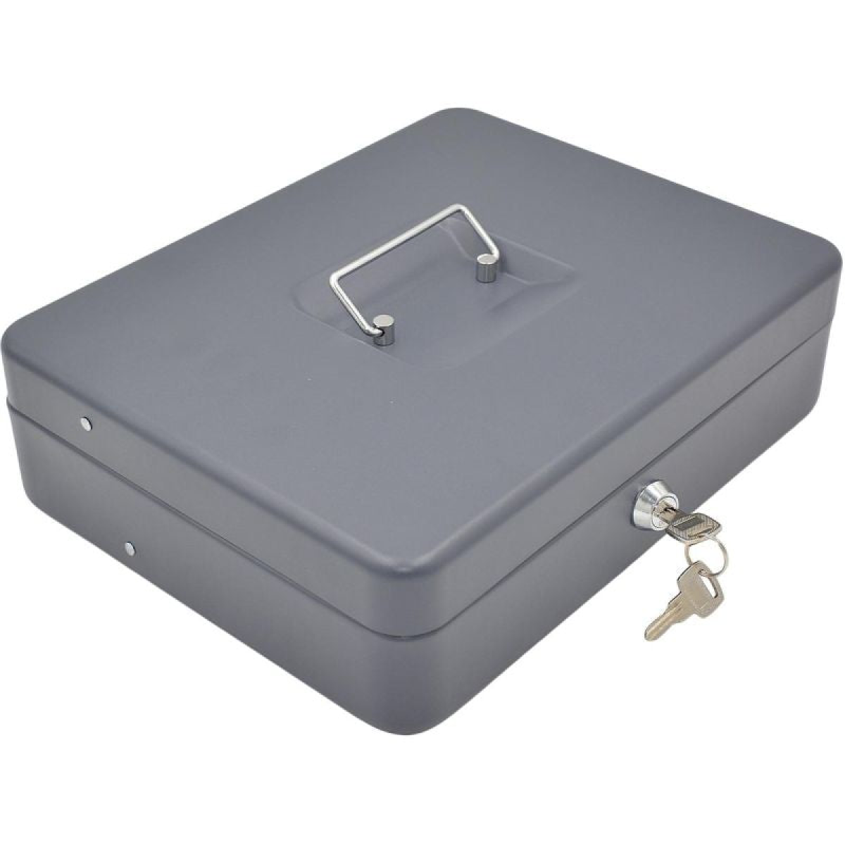 The box is made of 0.7mm thick steel and features a chrome-plated handle, ensuring long-lasting durability and resistance to damage. Ideal for safely storing cash, documents, and other valuables.