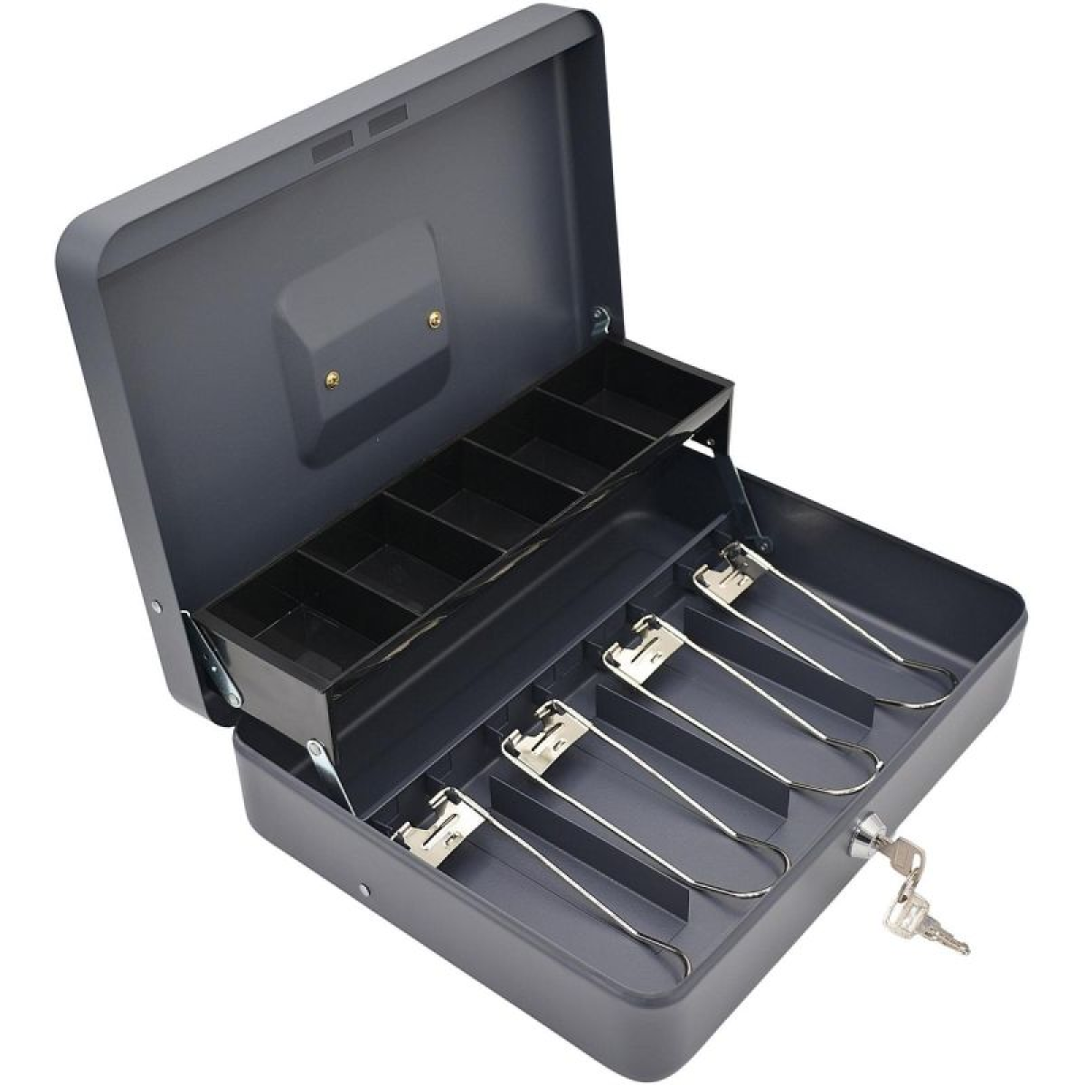 The 30X24X8.5CM cash box is a durable, functional and professional solution, ideal for offices, shops, service points and home use!