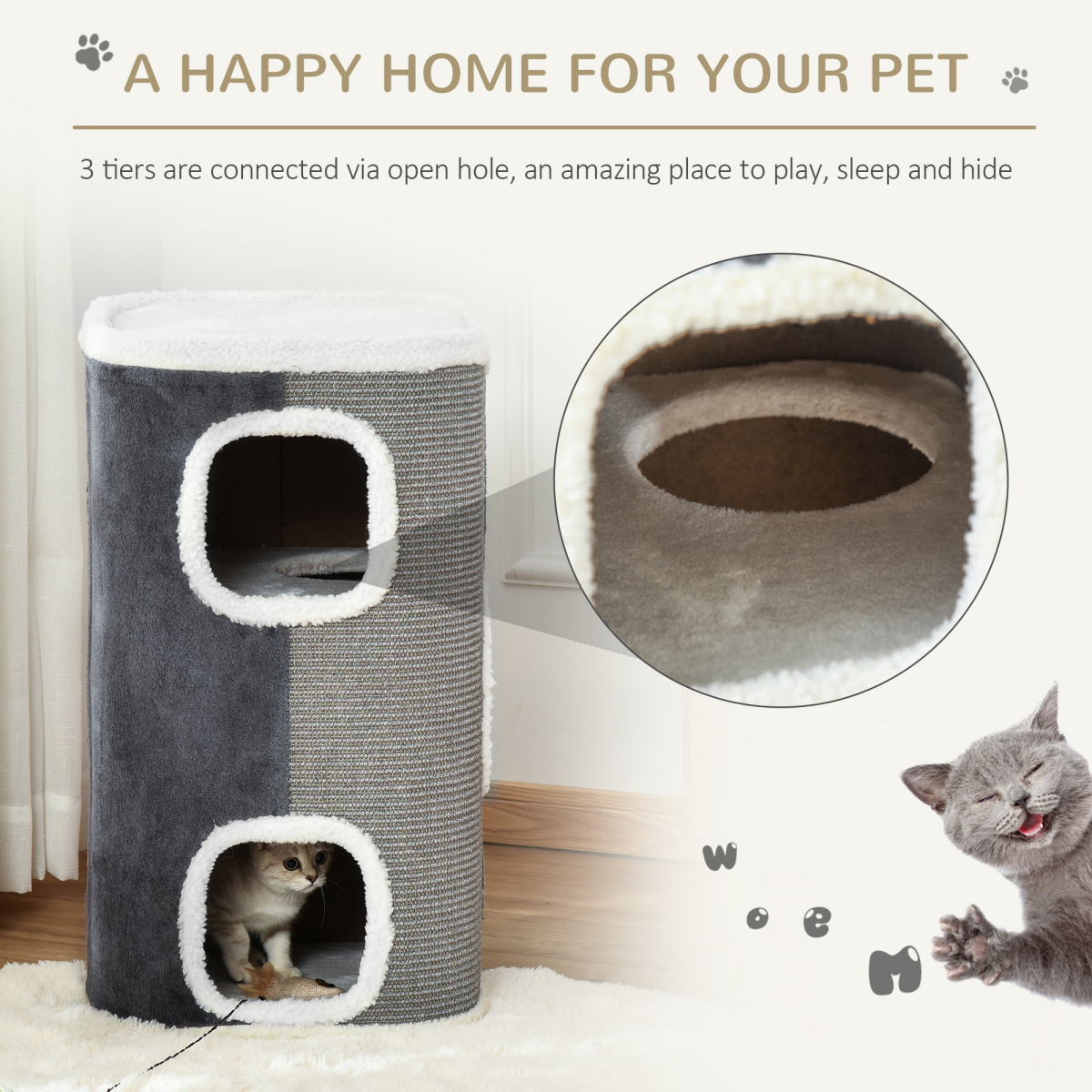 THREE AREAS: This cat barrel has a total of three layers, and 2 large holes interconnect them so they can move around. An ideal place to rest and relax.SCRATCHING PADS: Allows your cat/kitten to sharpen and keep their claws in shape. This scratching barrel helps save furniture from being used.SOFT LINING: Outside covered with short plush fabric and lamb fleece covered on inner board, making this cat tower the resting area comfortable and cosy. The double-material double-color design on the surface makes it a good decoration.STURDY: Particle Board structure ensures the barrel is sturdy and stable for reliable everyday use and keeps the whole cat tree for indoor cats strong and pet friendly.PRODUCT INFORMATION: OVERALL DIMENSIONS: 74H x 40L x 40Wcm. CUSHION DIMENSIONS: 37L x 37Wcm(on top perch). Recommended Pet Weight: Under 4.5KG. NO ASSEMBLY REQUIRED.
