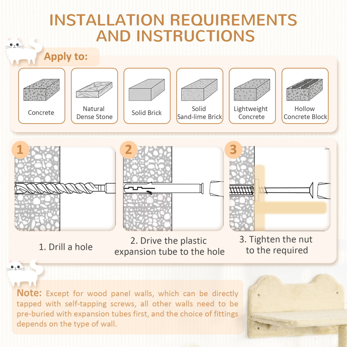 Cat Shelf with Scratching Post, Wall-Mounted Cat Tree for Indoor Cat - Beige