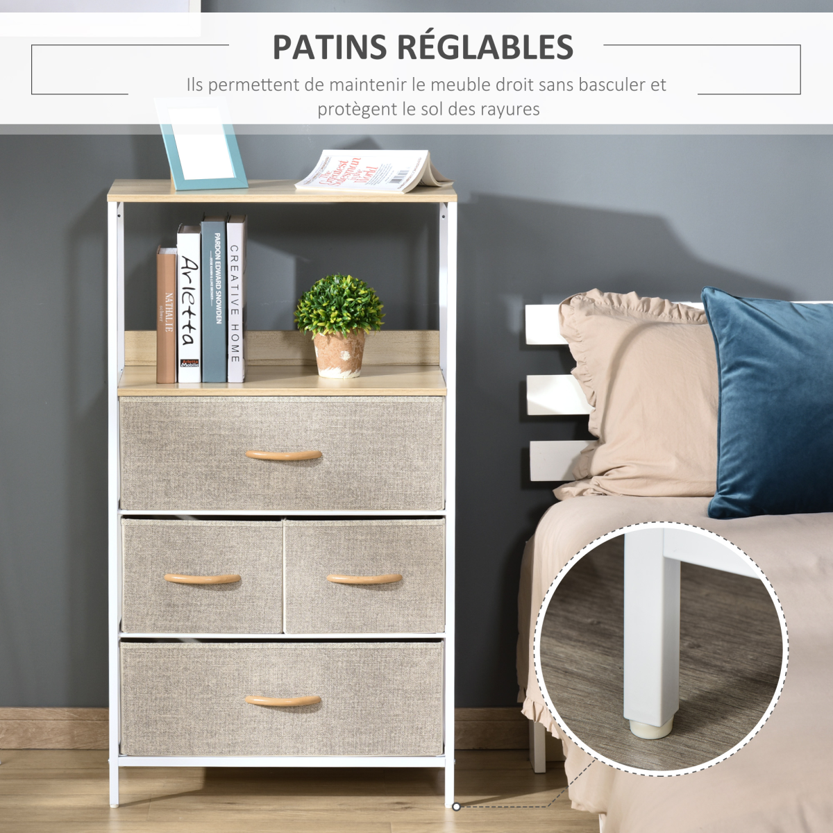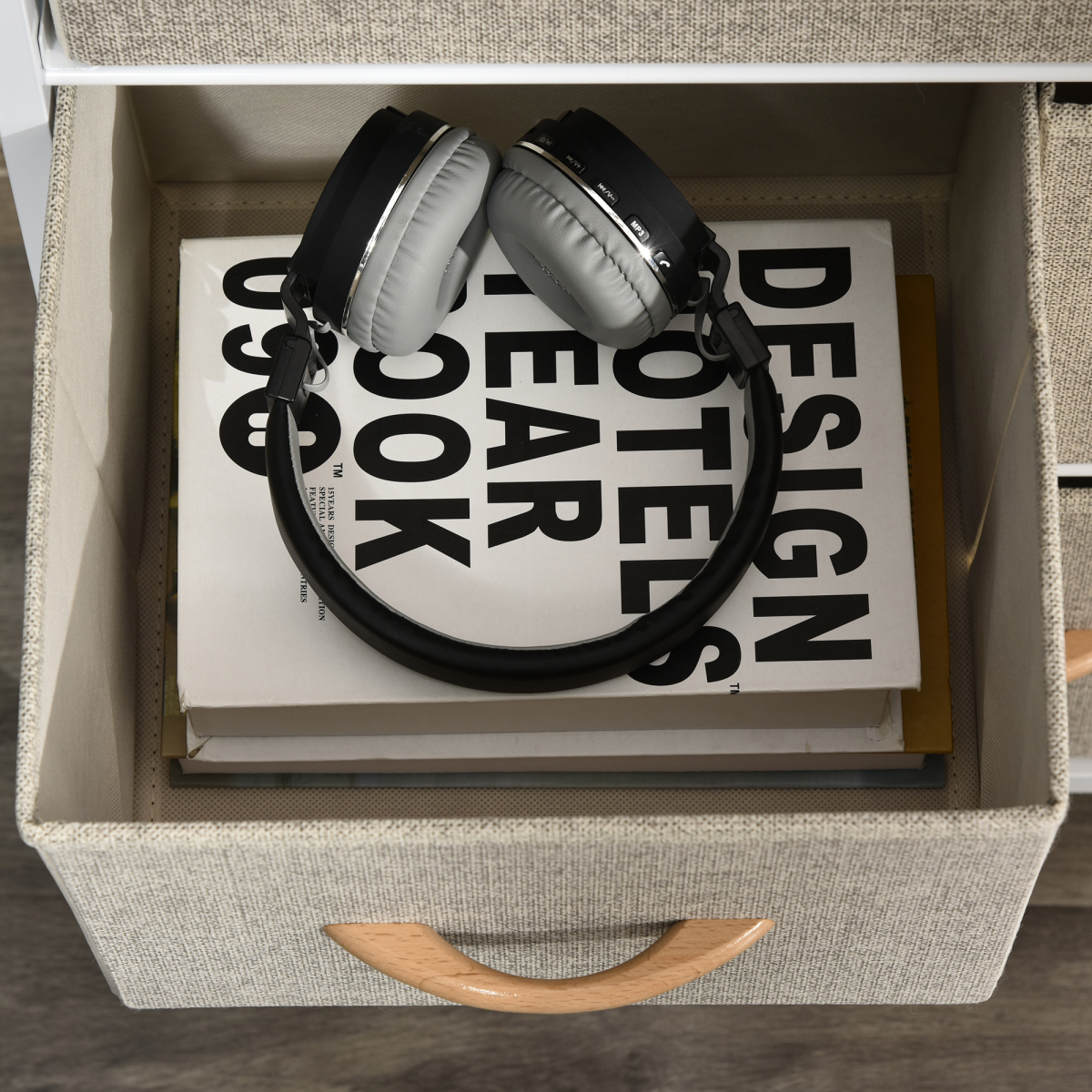 Linen-feel drawers can be removed and folded. Comes with handle to open and close