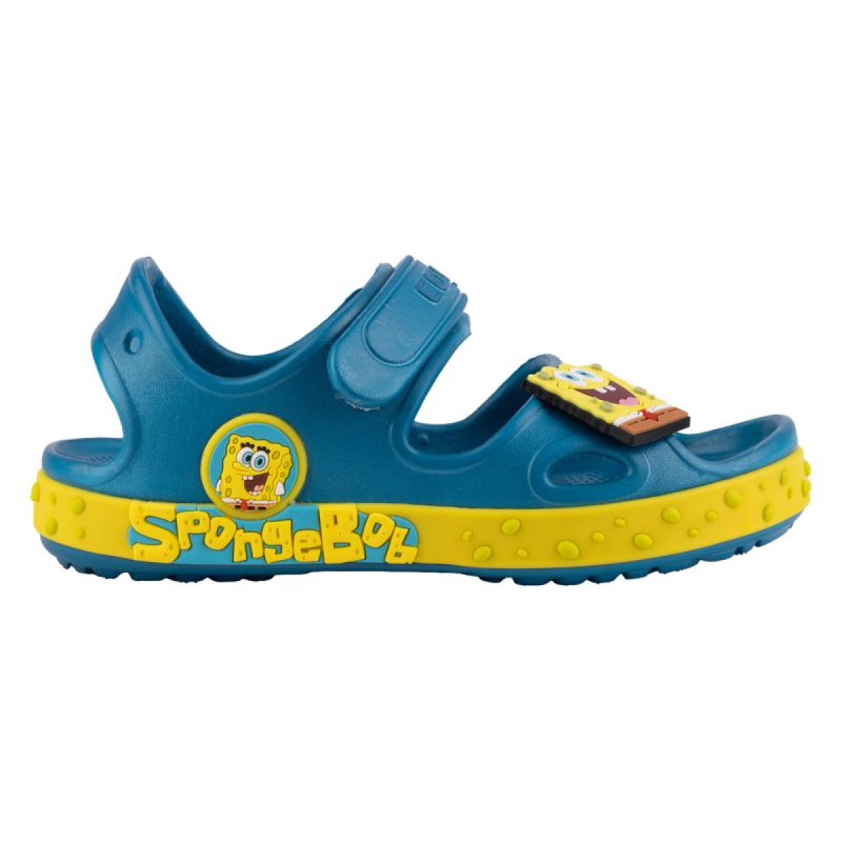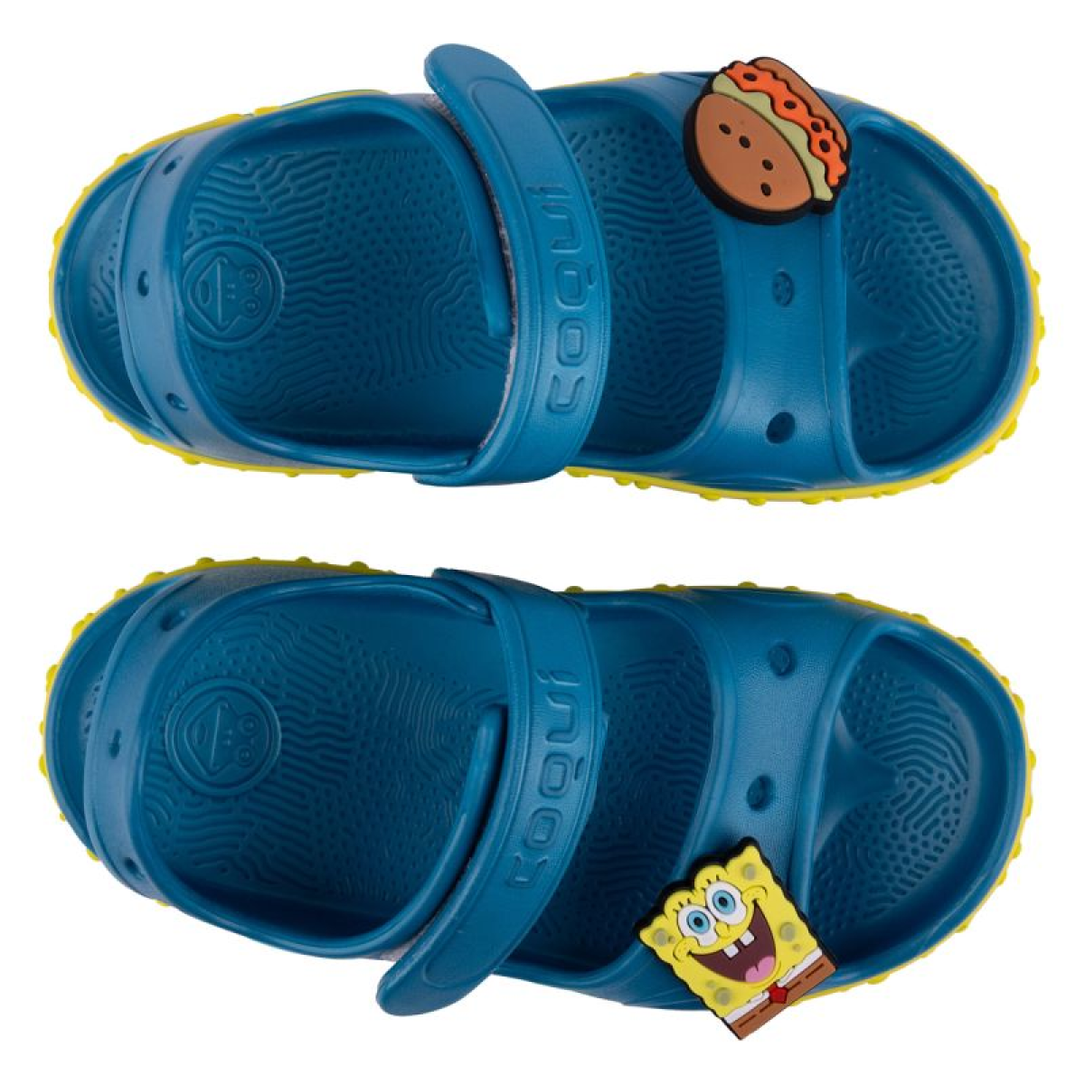 CoquiAir material (the highest class of EVA materials) Cushioning Antibacterial surface Anti-slip and non-marking sole Strong heel strap One strap with Velcro adjustment Possibility of personalization with Amuletz pins Includes a pin with a character from the Spongebob Squarepants animation