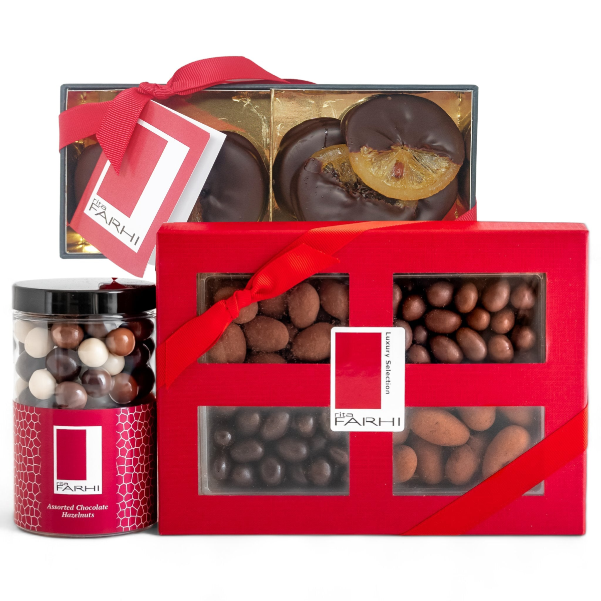 'If you’re sweet on citrus and crave something truly special, let us introduce you to The Citrus Indulgence Hamper. Brimming with jewel-like slices of candied orange and lemon, each luxuriously dipped in smooth chocolate, it’s a gift that shines at any occasion. If you are nuts for seriously good treats, allow us to introduce you to The Nut Lovers Hamper. Overflowing with a tempting assortment of pecans, peanuts, hazelnuts, and more, it's the perfect addition to any occasion.'