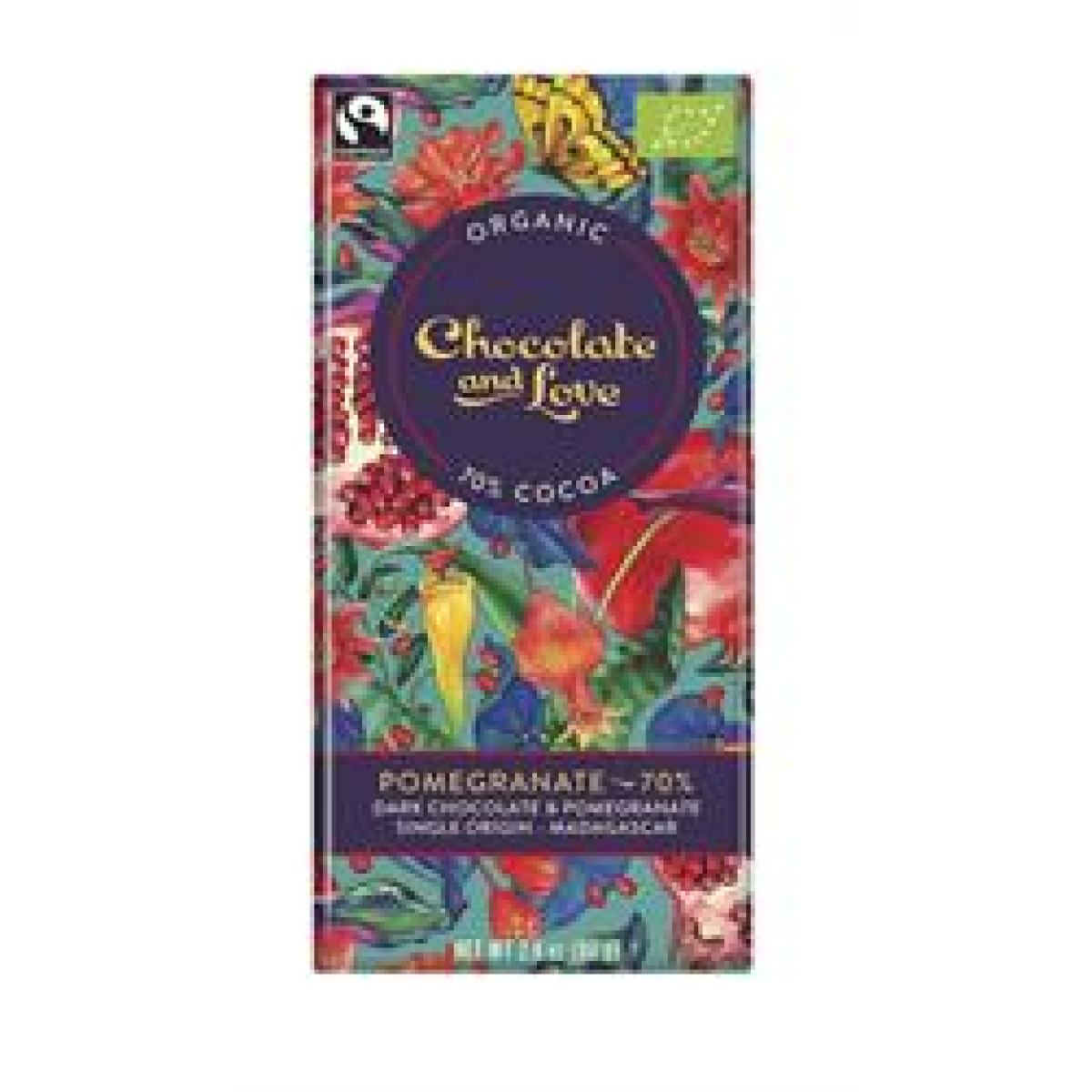 Chocolate and Love Organic/Fairtrade dark chocolate with pomegranate 70% 80g