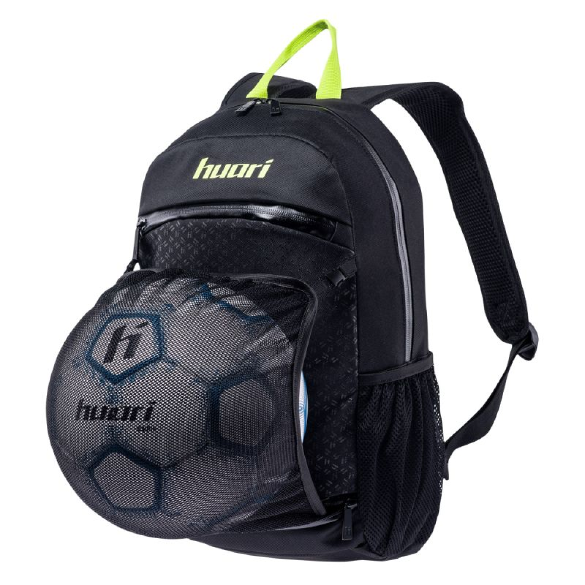 BACKPACK CAPACITY: 15 l DIMENSIONS: 42 x 24 x 12 cm WEIGHT: approx. 0.40 kg MATERIAL COMPOSITION: POLYESTER SPECIFICATIONS: – WATERPROOF ZIPPERS – BALL COMPARTMENT
