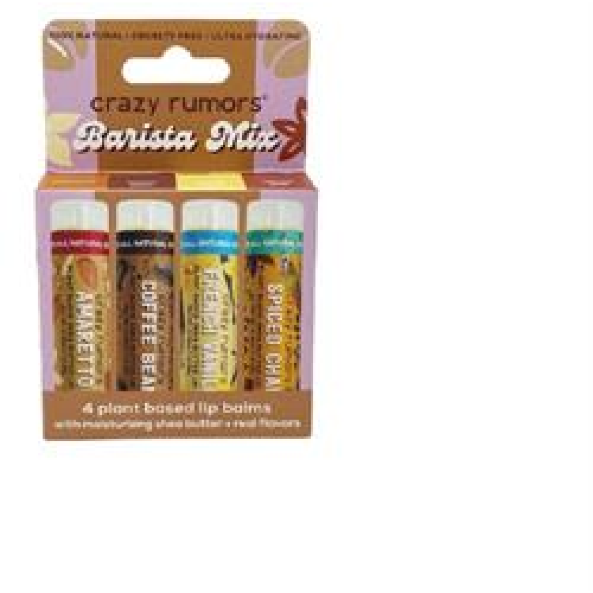 Crazy Rumors mix pack is a beautifully presented collection of 4 lip balms ready for gift giving ...or keeping! The Barista Mix has 4 captivating aromas and are what mornings are made for - rise and shine! Barista Mix - 4 pack (Amaretto, Coffee Bean, French Vanilla, Spiced Chai) 100% natural and vegan ultra moisturising lip balms. Each lip balm is 4g