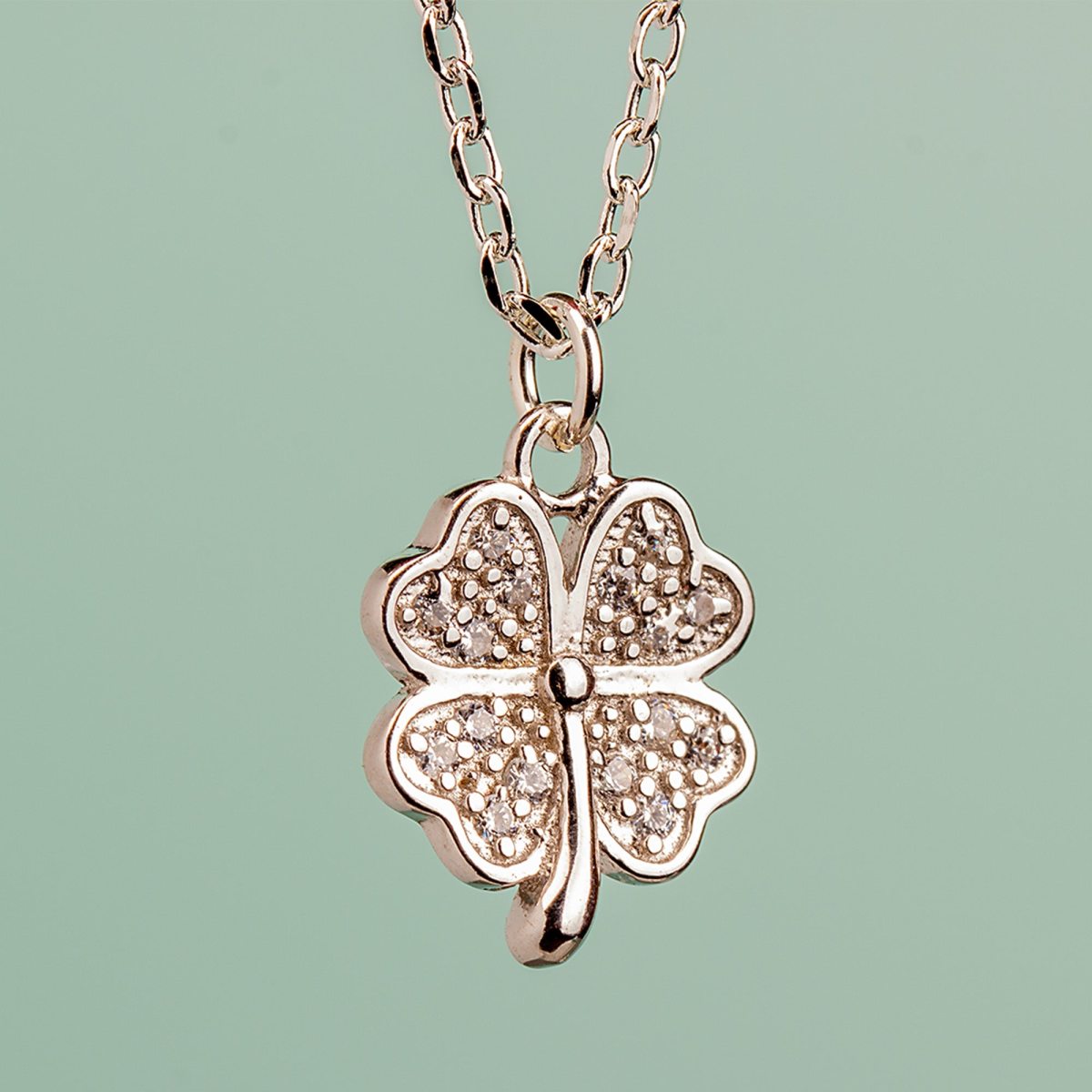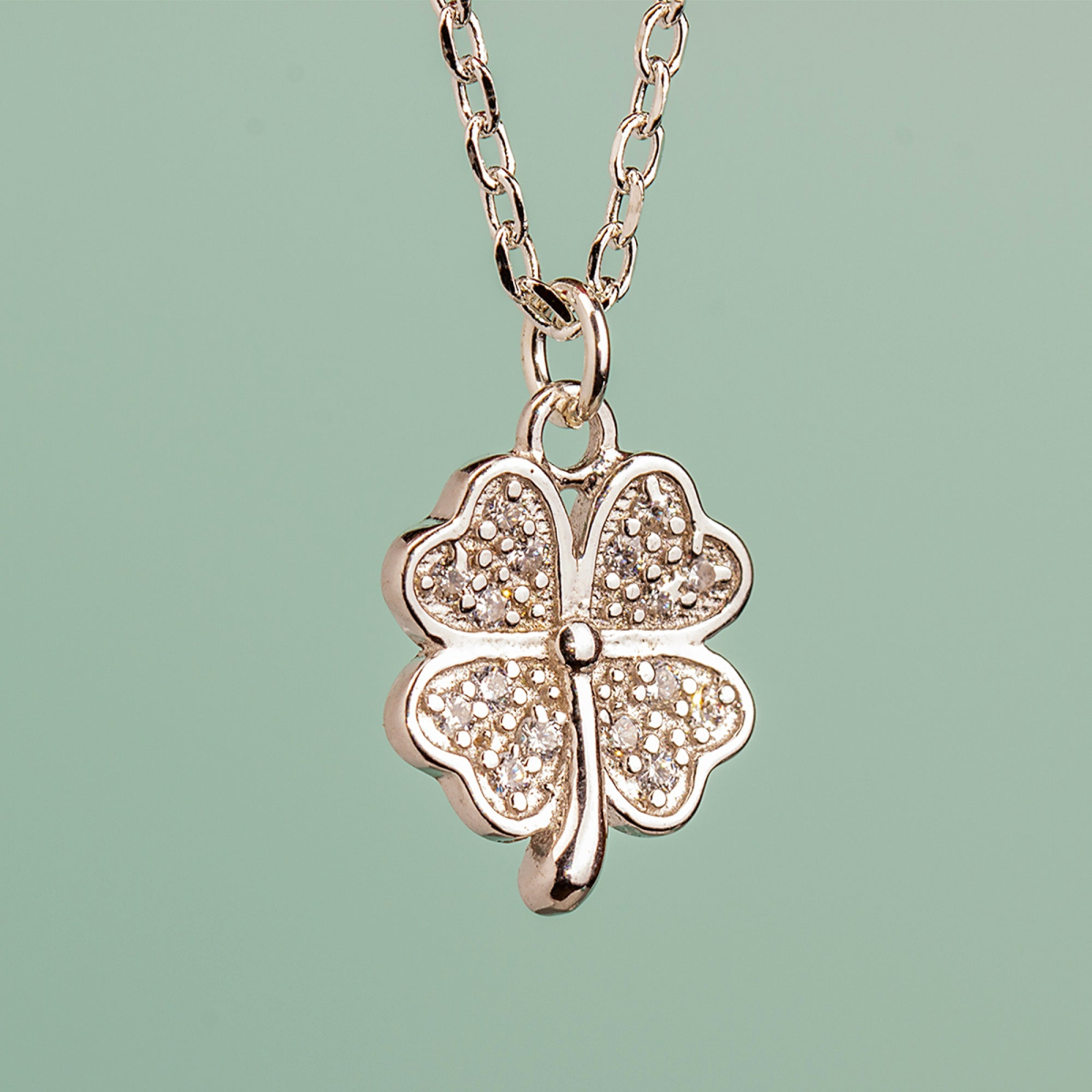 Sterling Silver Clover Charm: Delicately designed clover charm adorned with sparkling crystals, symbolising luck and fortune.