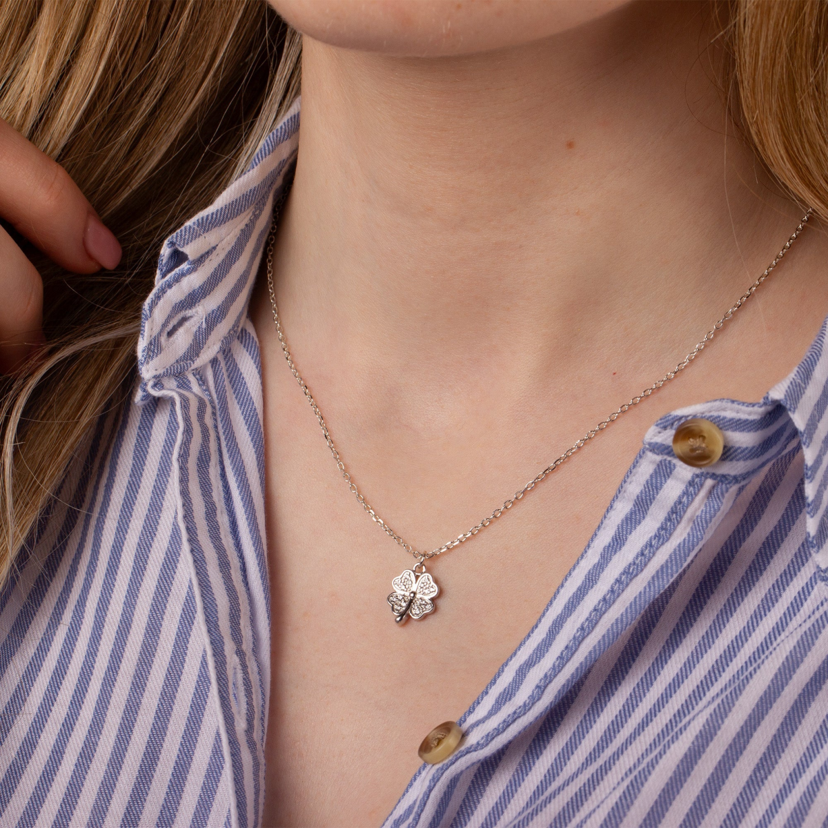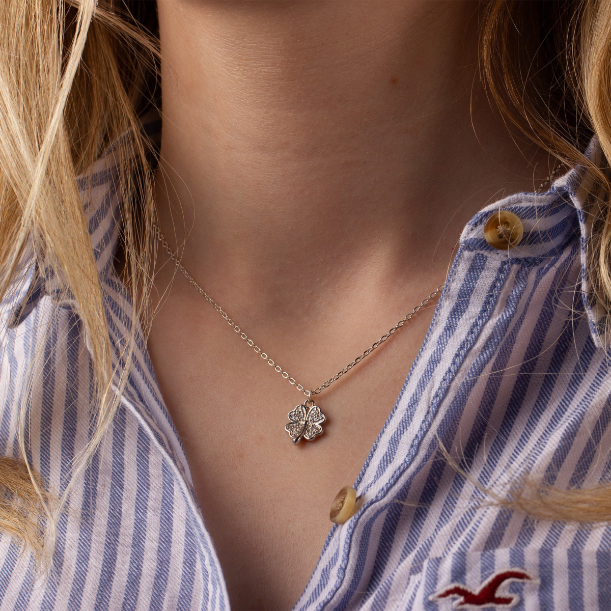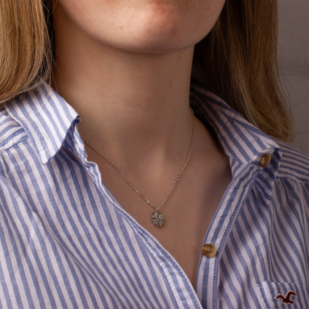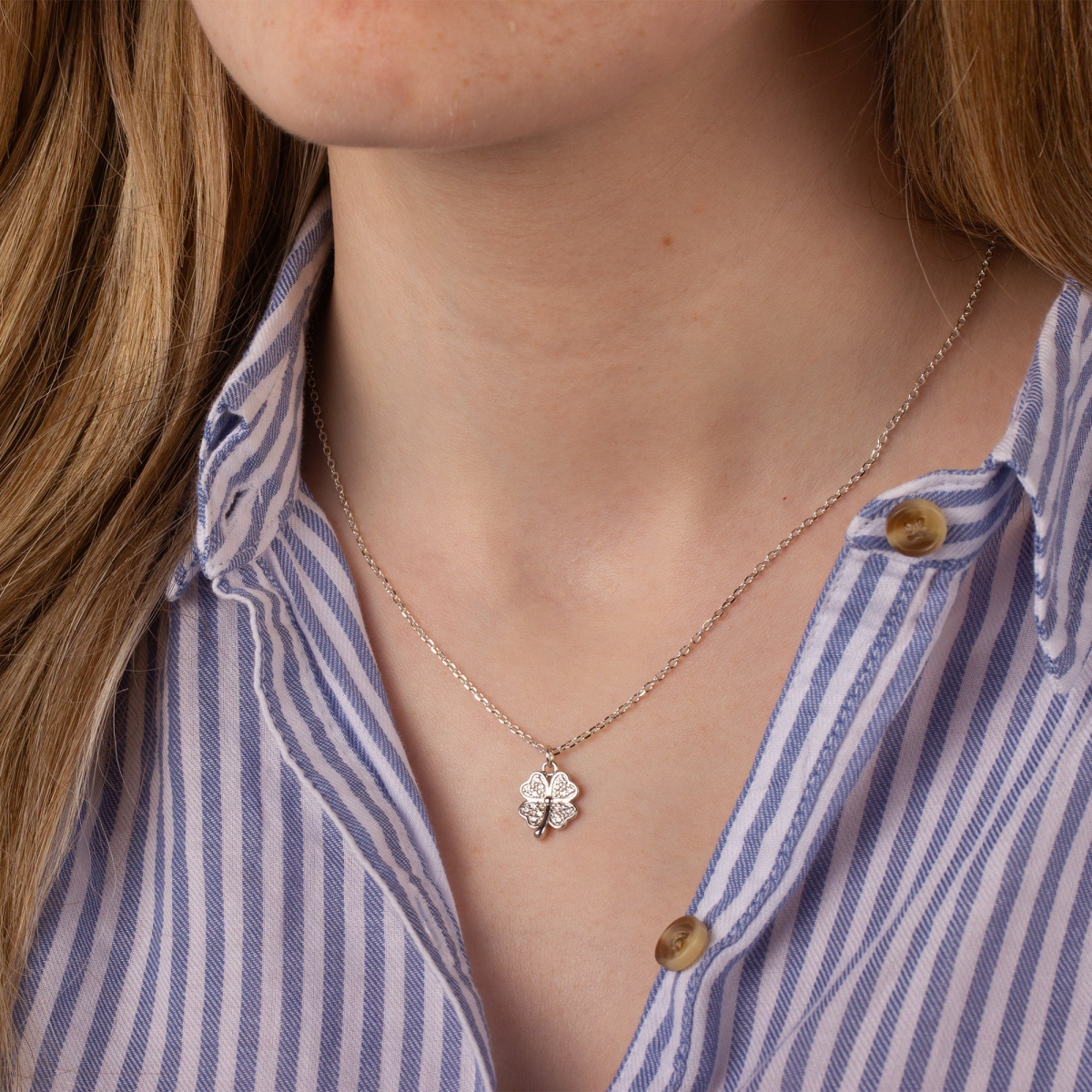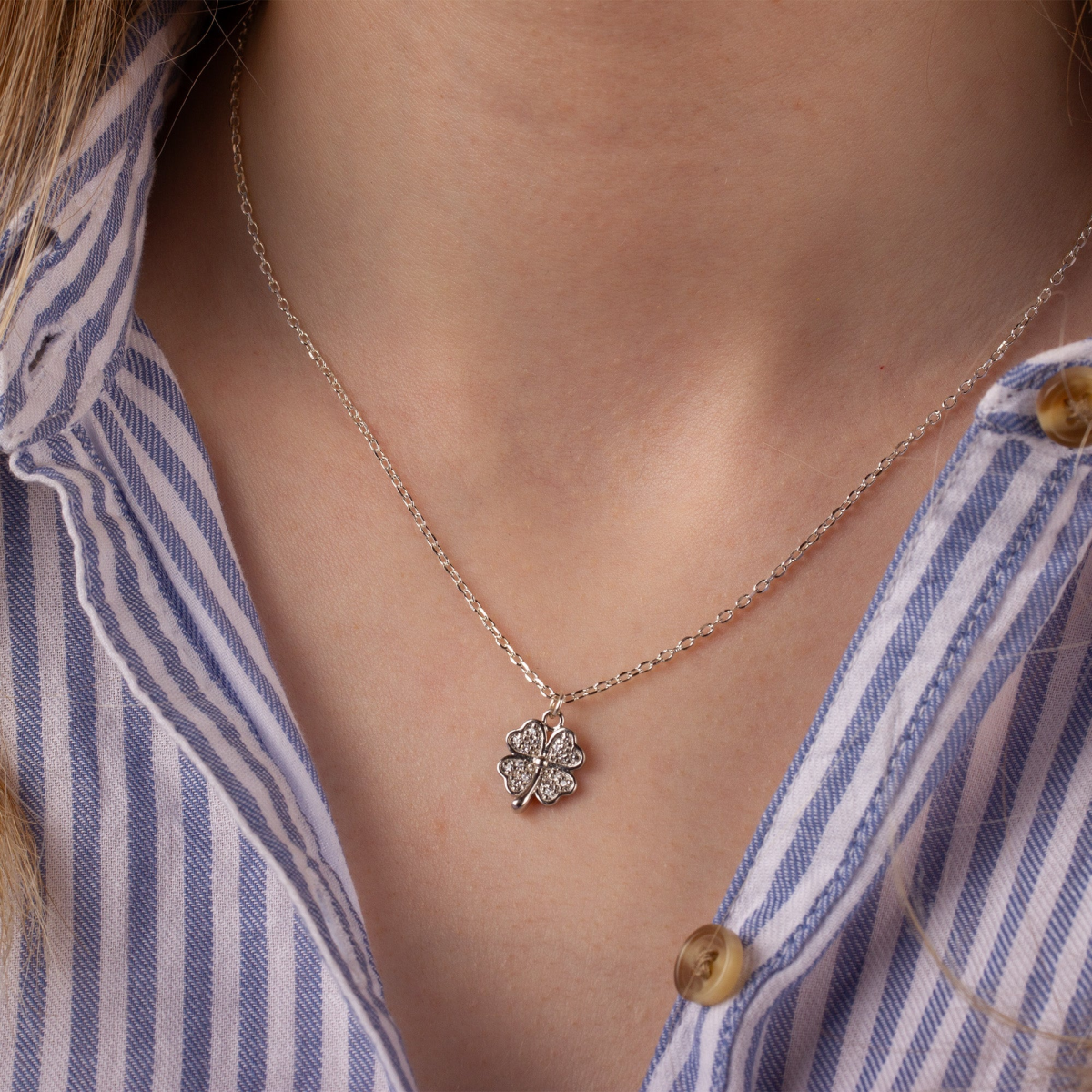 Radiate elegance and fortune with our Sterling Silver Crystal Clover Necklace.