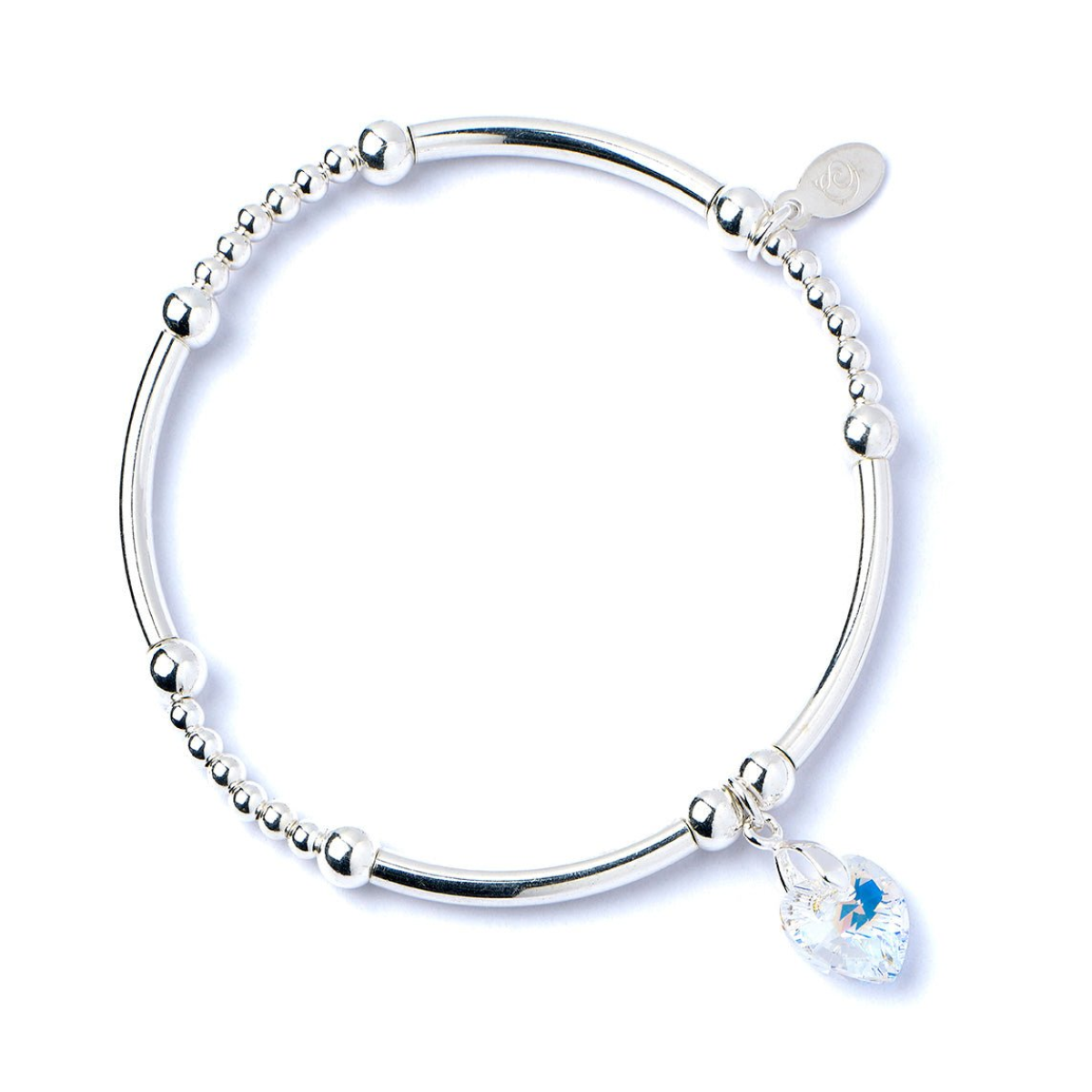 Crystal Heart on Silver Ball & Noodle Bead Bracelet