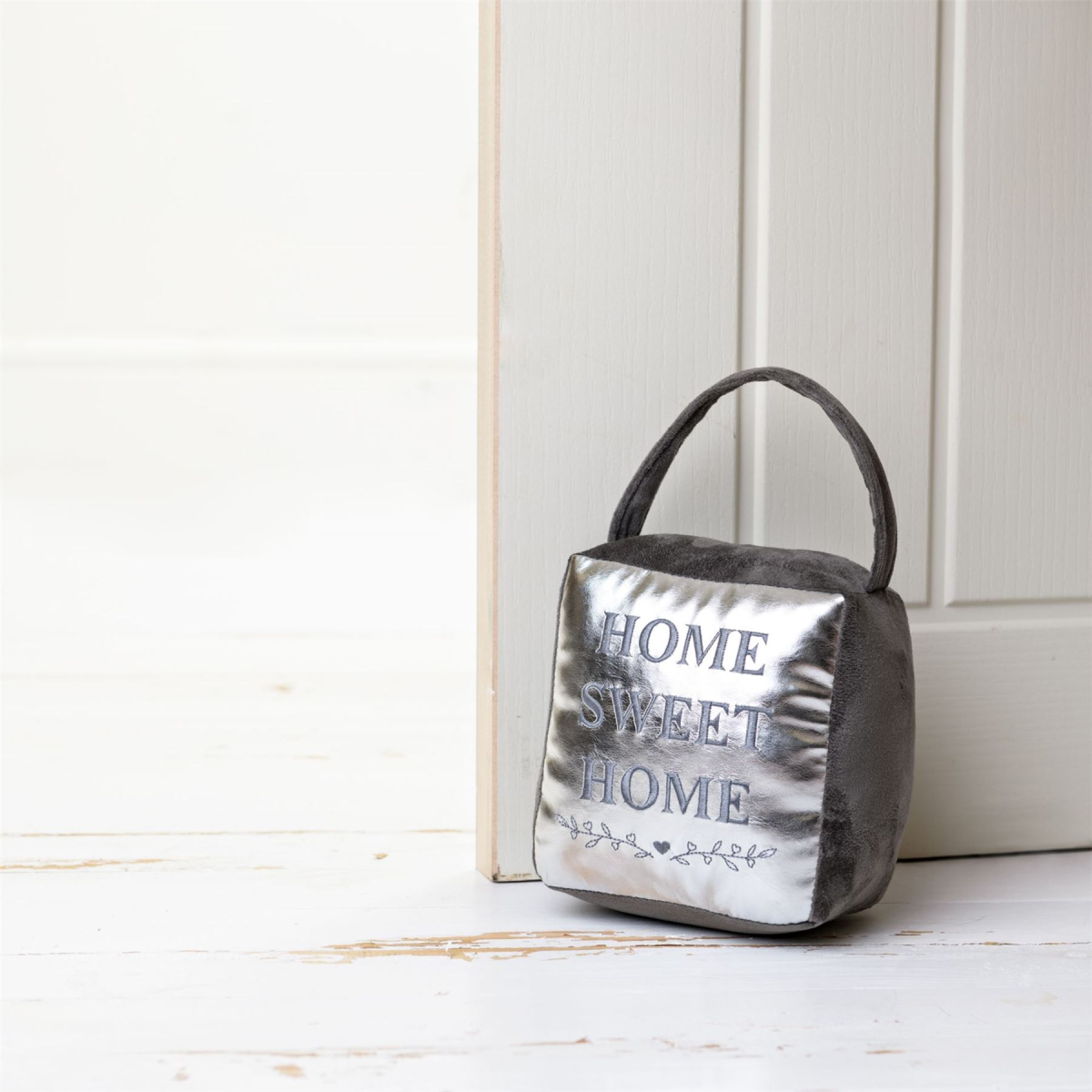 Cube 'Home Sweet Home' Silver Door Stop