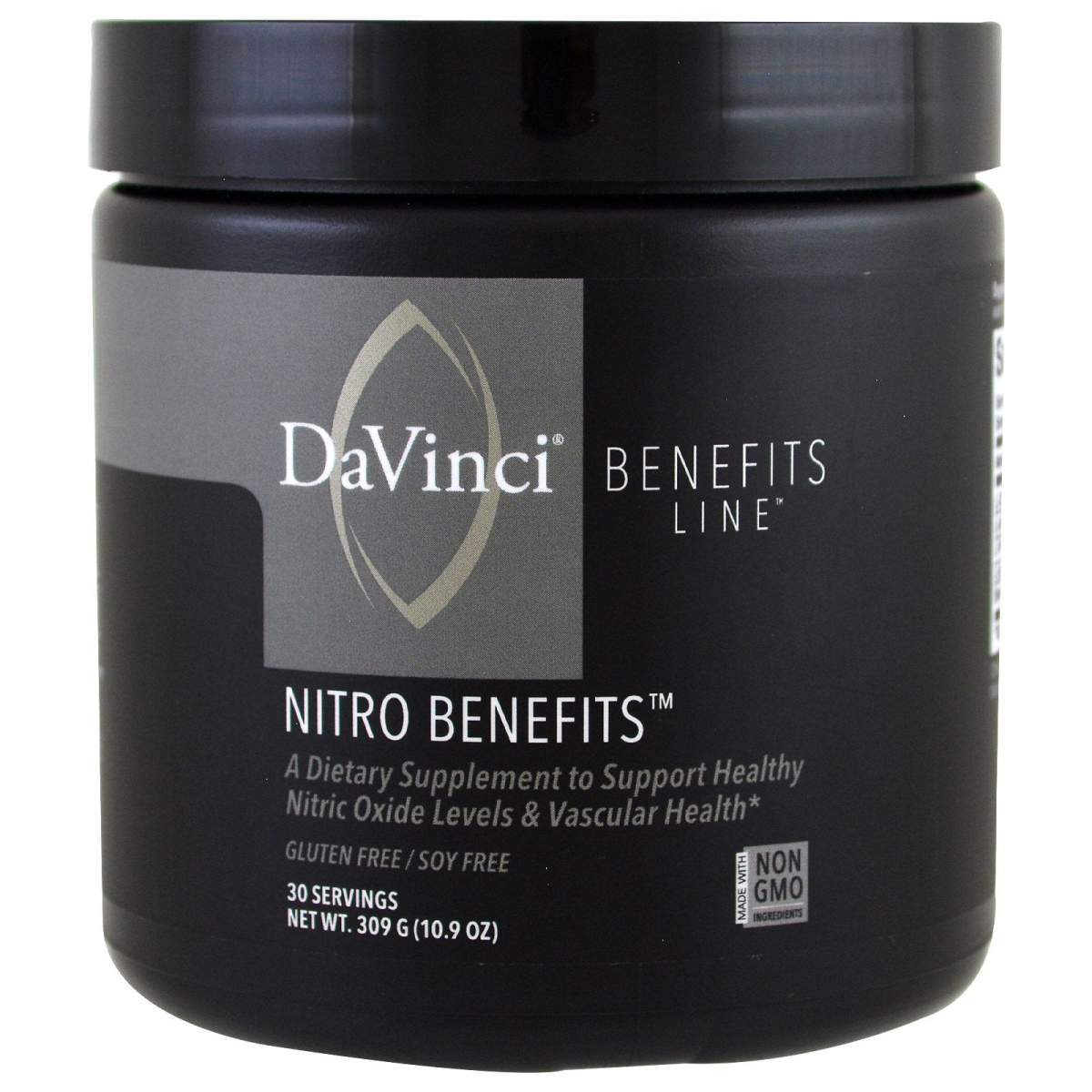 Gluten Free | Soy Free 30 Servings Made with Non-GMO Ingredients Simply Formulated to Deliver More A dietary supplement to support healthy Nitric Oxide Levels & Vascular Health Simply Formulate to Deliver More The Benefits Line is designed for power. Each formula offers clinically relevant levels of evidence-based nutrients to provide more with less.