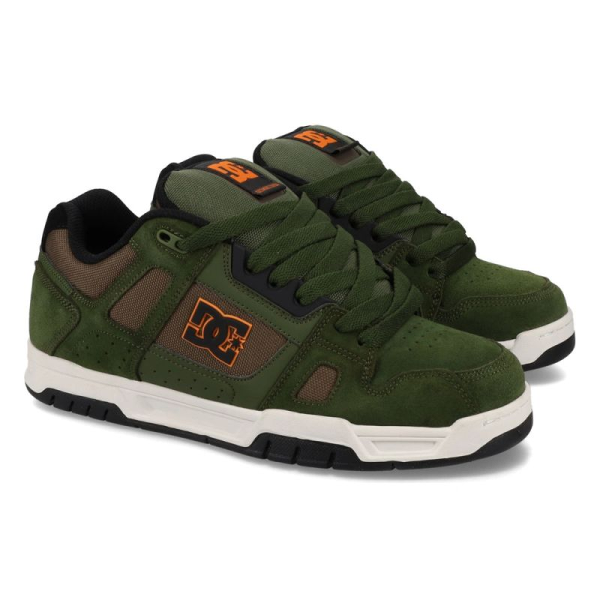 The DC Shoes Stag DC01813310 Olive is a classic men's sneaker inspired by skateboarding culture , combining authentic skate design with comfort and durability. The upper, crafted from a combination of nubuck, leather, and textile, provides durability and a stylish look that pairs well with casual outfits. A padded tongue, collar, and cushioned insole enhance comfort, while the classic lace closure allows for a perfect fit.