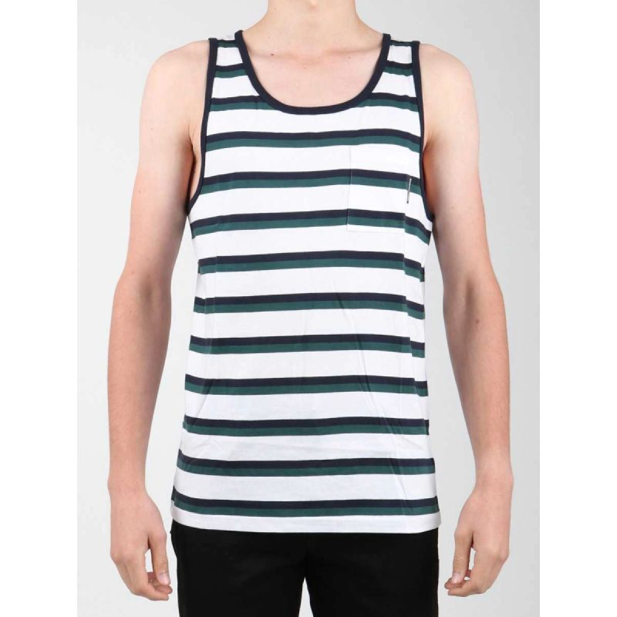 Sleeveless striped T-shirt.