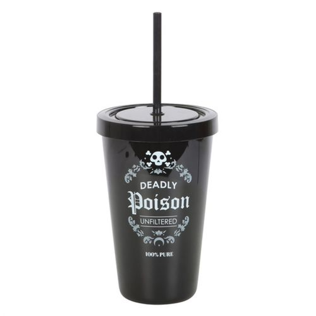 This tumbler is more than a drinkware item; it's a statement piece. The bold white 'Deadly Poison' design set against the sleek black background creates a striking contrast, turning an everyday object into a symbol of unique style. Handwash only. Not suitable for microwave use. 500ml.