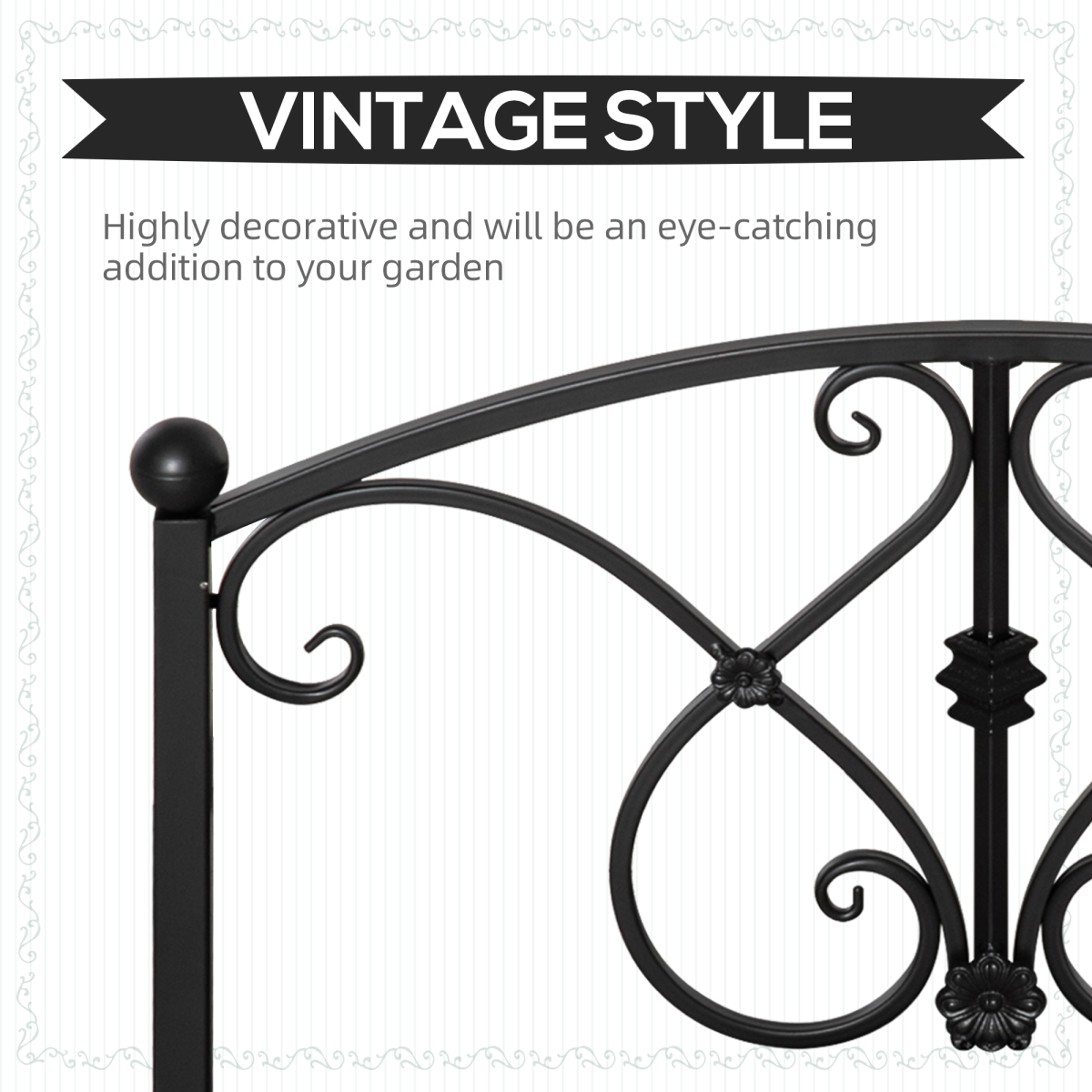 ENHANCE YOUR GARDEN: Place Outsunny's garden bridges to walk on over a small stream or garden walkway and add a decorative touch to your outdoor surroundings.COMPLEMENTARY BEAUTY: The elegant arched garden bridge frame and the side rails with floral pattern adds an instant and classic charm with its traditionally designed walkway.SAFE CROSSING: The strong handrails guarantee your safety when walking on the pond bridge, avoiding accidentally falling.SOLID CONSTRUCTION: The sturdy metal frame with two processes of electrophoresis and powder coating can resist weather elements and thus the pond decorations outdoor