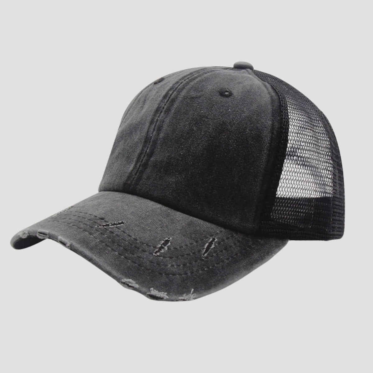 Introducing the Peaked Net Cap in Black! This stylish and versatile cap features a unique net design on the peak, providing extra breathability and ventilation for your head. Perfect for outdoor activities and casual wear. Upgrade your cap game today!