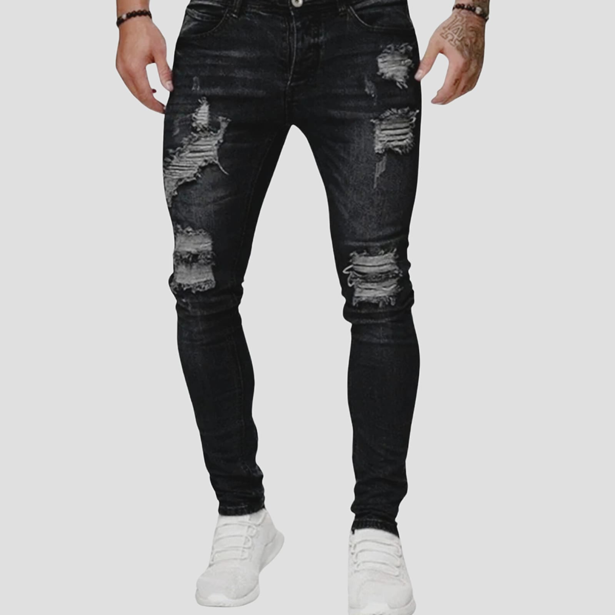 Unleash your inner rebel with our Denim Jeans in Black! These stylish and edgy jeans feature a distressed design that adds a touch of attitude to any outfit. With their trendy look and comfortable fit, these jeans are a must-have for anyone looking to make a fashion statement.