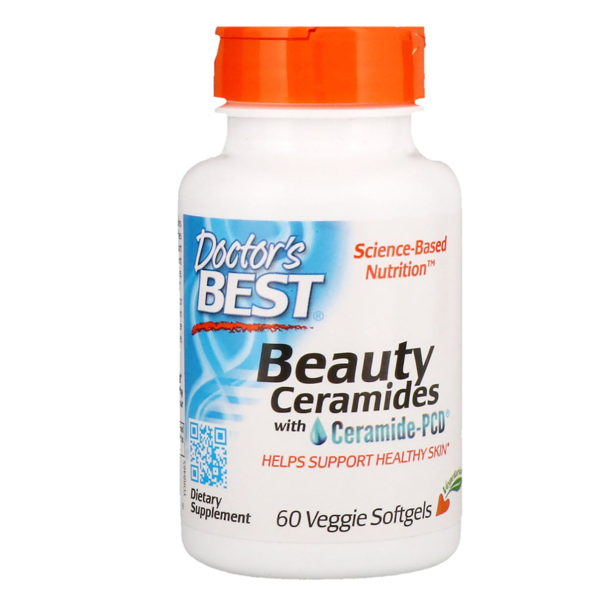 Science-Based Nutrition Helps Support Healthy Skin Dietary Supplement Vegetarian Non-GMO Gluten Free Soy Free Helps Support Skin Moisture Helps Reduce Skin Dryness and Scaling Veggie Softgels, Made with a Healthy Gelatin-Free Alternative to Suit Your Lifestyle Doctor's Best Beauty Ceramides contains Ceramide-PCD, 100% rice phytoceramides and natural astaxanthin to help support healthy skin from within. This potent combination helps improve skin moisture, smoothness, and reduces skin roughness. Ceramide-PCD has been clinically shown to reduce skin dryness and scaling. Astaxanthin is a potent antioxidant that helps minimize collagen degradation from UV sun exposure, protecting skin from the inside out.