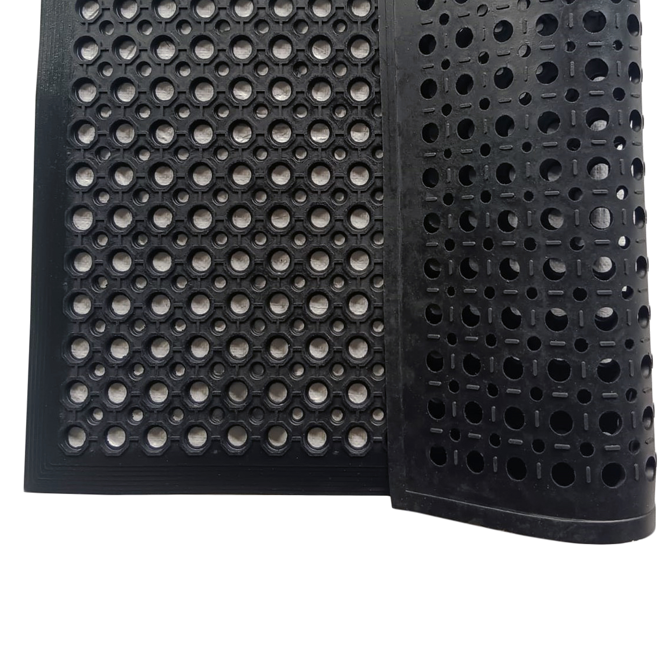 Doortex heavy duty open-top anti-fatigue mat provides a highly effective all-weather outdoor entrance mat solution. The drainage hole design allows snow and water to flow through to retain the mats effectiveness. Heavy duty rubber construction gives excellent stability either in home or business environments. These mats are excellent with moisture and dirt removal. Rigid construction allows effective scraper surface for removing dirt from footwear. Not advised for indoor use