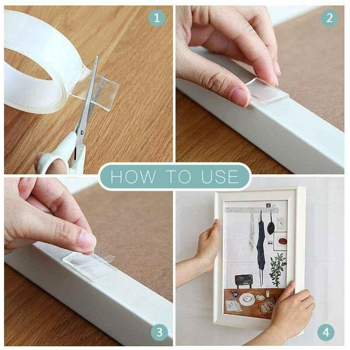 - Suitability: Multifunctional double-sided nano tape is perfect for kitchen household and industrial use, like posters, picture frames, wall stickers, small tools, wall décor, home, office, workshop etc. The nano tape can hold items up to 1 KG (2.2 LBS) on smooth surfaces.
