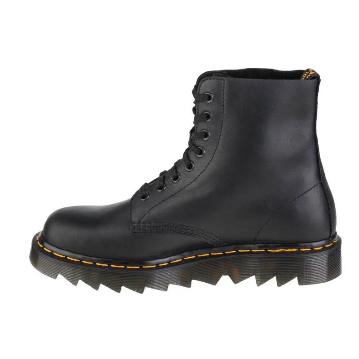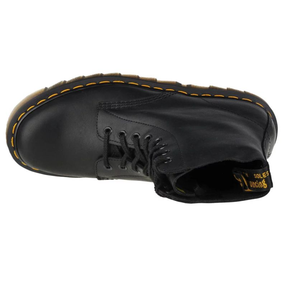 Made of natural grain leather in black. Leather insole. A sole with a characteristic shape sewn to the top of the shoe using the famous yellow thread (Goodyear Welted technology). The sole has the so-called typical Martens sole. airbag.