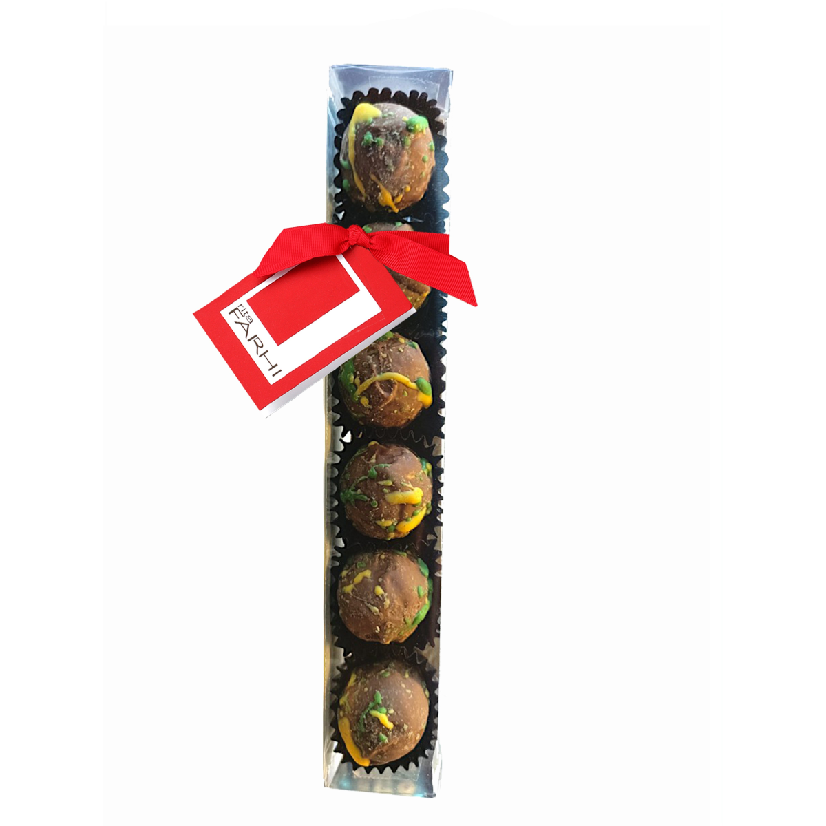 A truly unforgettable experience, our luxurious Dubai Chocolate Knafeh Truffle is a decadent fusion of rich tradition and modern indulgence. Encased in velvety chocolate, each truffle brings together the delicate flavours of traditional pistachio Knafeh, a beloved Middle Eastern dessert. The soft, melt-in-your-mouth centre is inspired by the sweet, aromatic essence of Knafeh, balanced with the nutty, slightly salty taste of roasted pistachios, all wrapped in a smooth chocolate shell. A true masterpiece of flavour and texture, this truffle is the perfect choice for celebrating special moments, sharing a thoughtful gift, or indulging in a well-deserved treat.