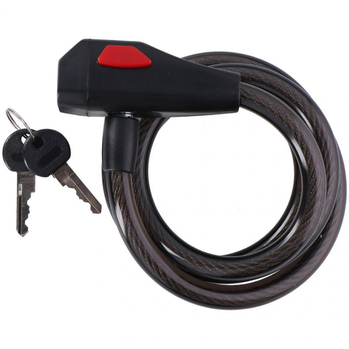 The Dunlop steel bicycle lock will help you protect your two-wheeler from thief. A strong rope with a diameter of 12 mm was covered with an elastic plastic sheath. Clasp 150 cm long. Bicycle security with key fastening.