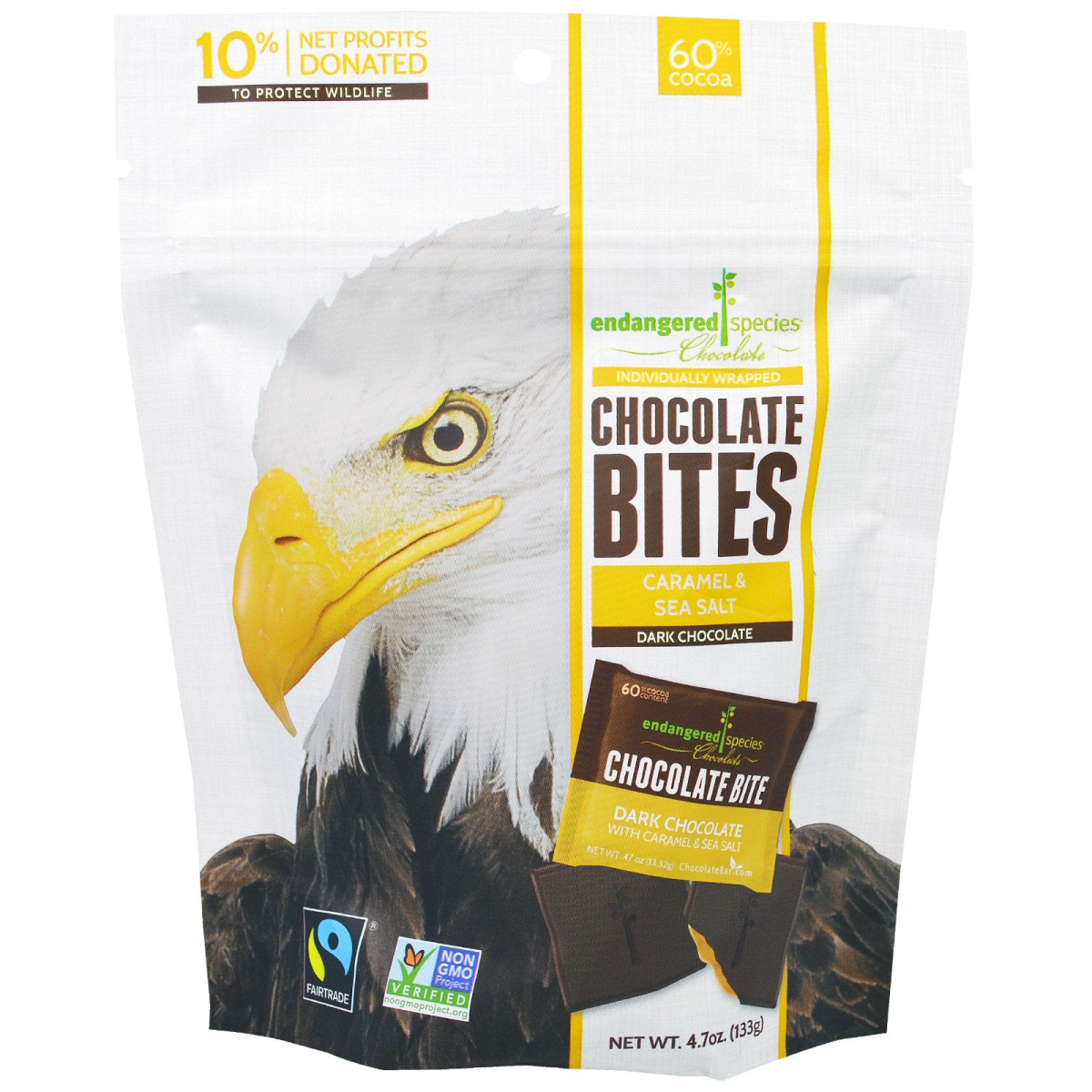 Endangered Species Chocolate, Chocolate Bites, Dark Chocolate with Caramel & Sea Salt, 4.7 oz (133 g)