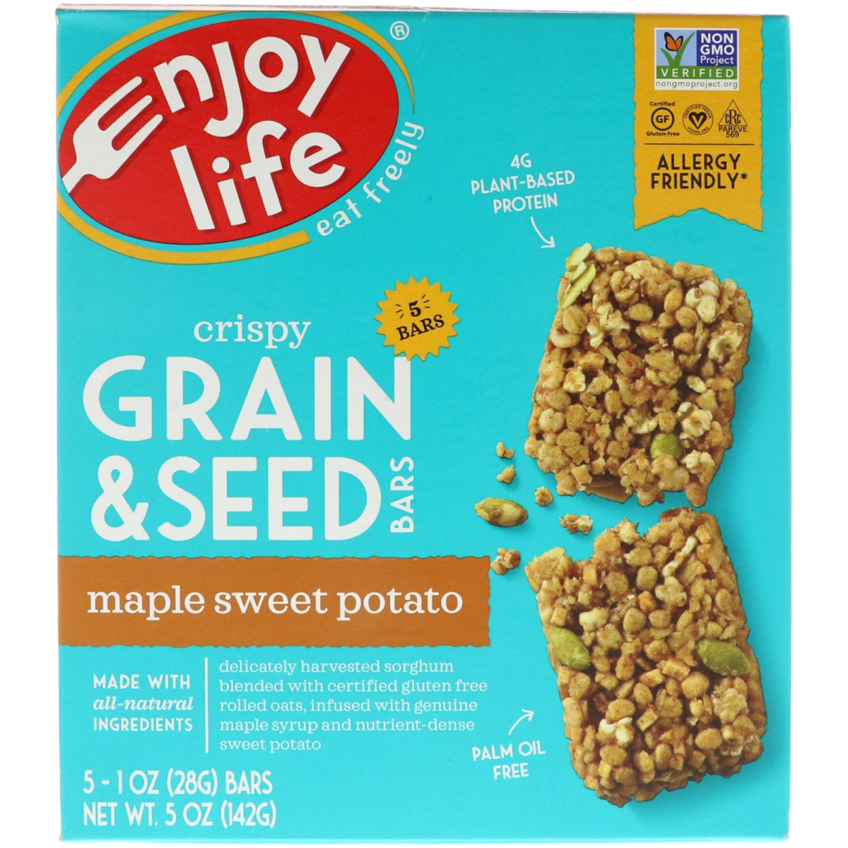 Enjoy Life Foods, Crispy Grain & Seed Bars, Maple Sweet Potato, 5 Bars, 1 oz (28 g) Each