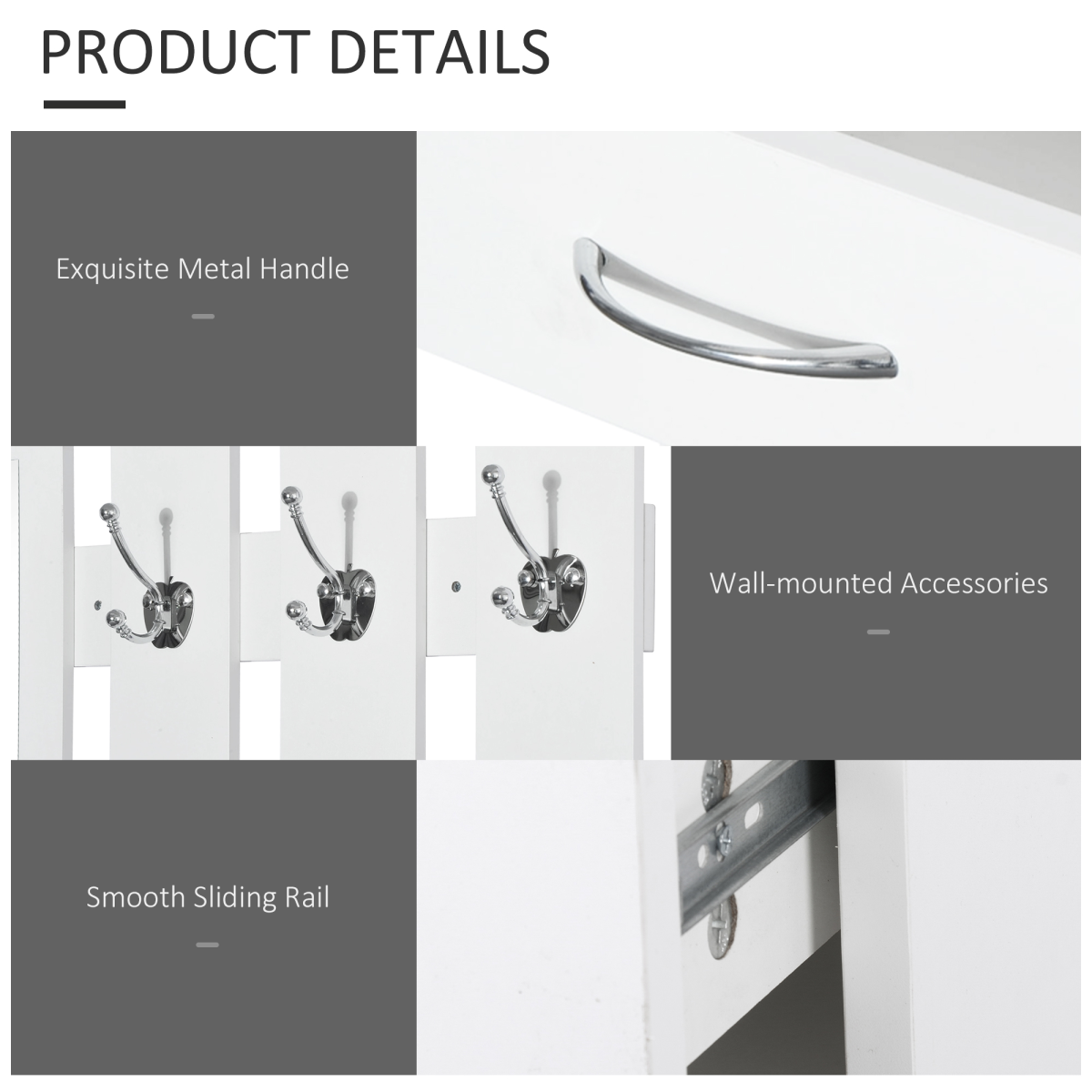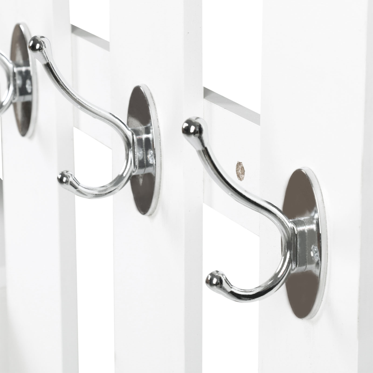 Assembly required.3-in-1 design with a mirror, hanging hooks and shoe storageHanger Unite Dimension: 90W x 22D x 116H (cm)Shoe Storage Dimension: 90W x 24D x 75H (cm)Made from white particle board construction.