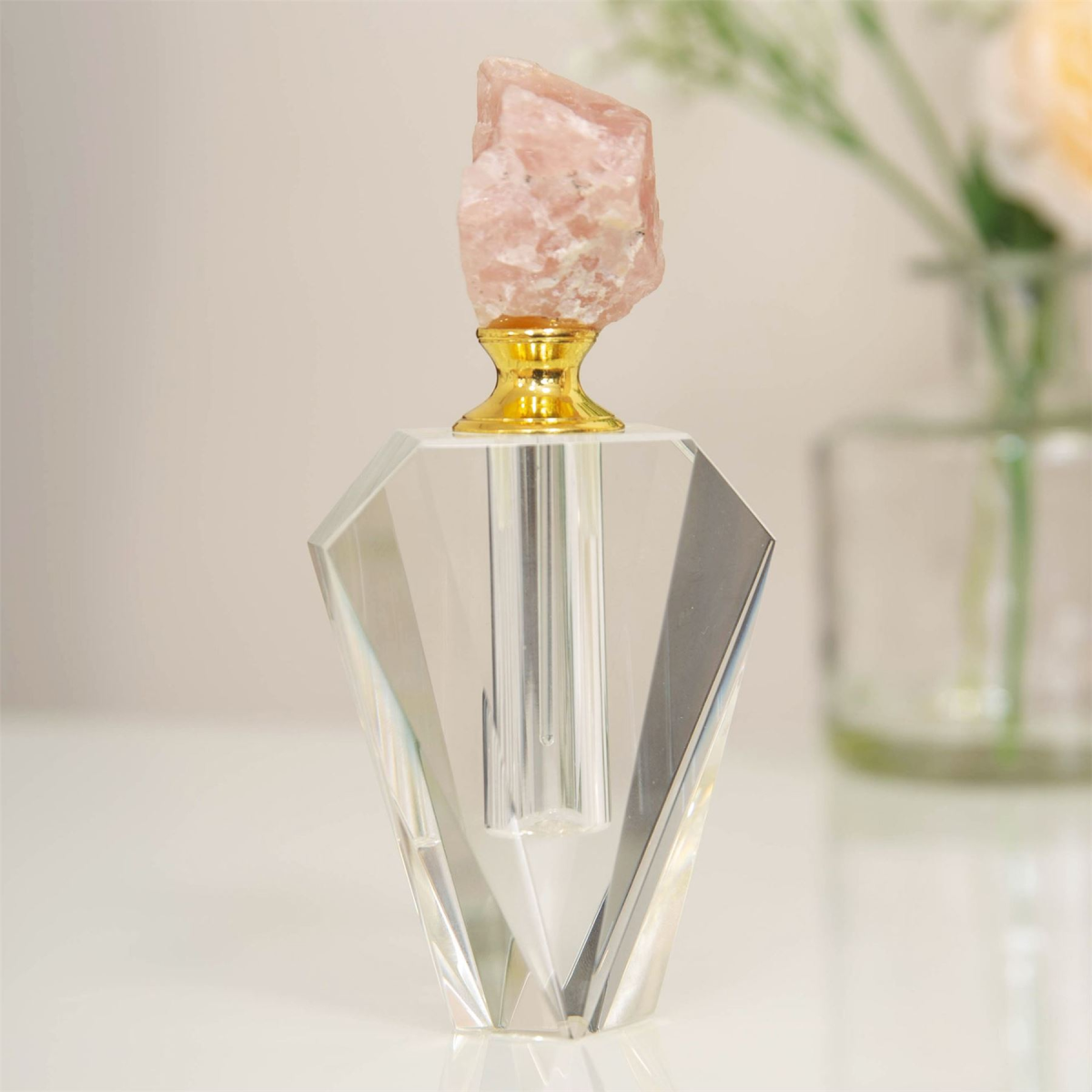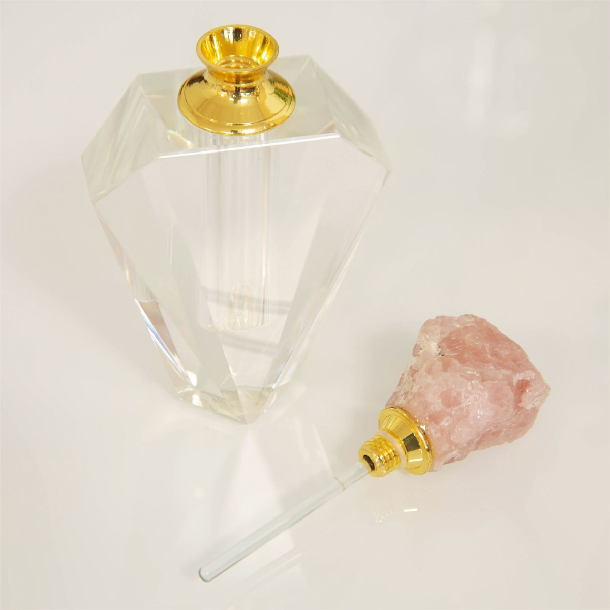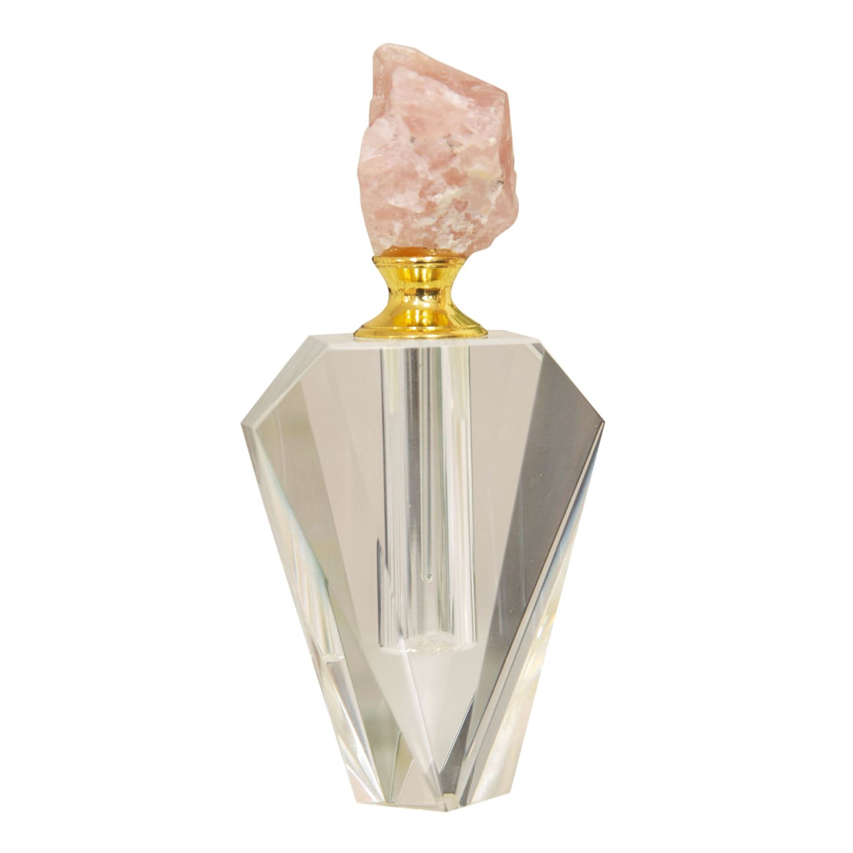 A beautifully elegant cut crystal glass perfume bottle with pink rock crystal stopper top. From Estella by SOPHIA� - Champagne Chic womens home and gift evoking the luxurious spirit of the art deco era.