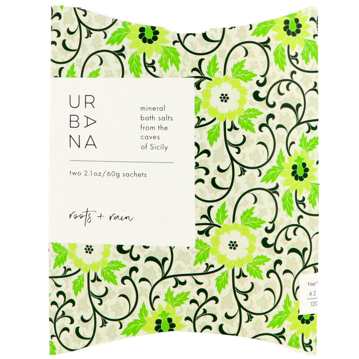 Mineral Bath Salts From the Caves of Sicily Urban Nirvana Create a spa in the comfort of your own home. Use one sachet to transform your bath with natural mineral salts from the caves of Sicily. Experience the soothing fragrance of Roots + Rain; green tea blended with citrus, rose, saffron and papyrus.