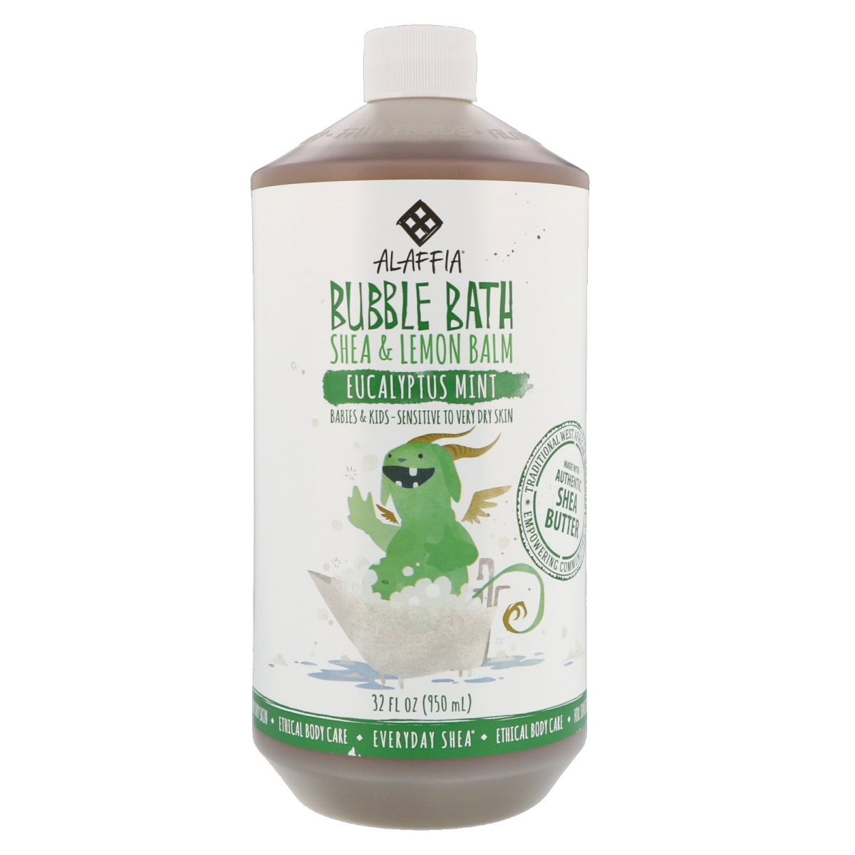Equality • Empowerment • Beauty • Fair Trade • Alaffia Babies & Kids - Sensitive to Very Dry Skin Traditional West African Ingredient Empowering Communities Made with Authentic Shea Butter Ethical Body Care Everyday Shea Ethical Trade Handcrafted No Synthetic Fragrance Vegan Paraben Free Biodegradable Ingredients Our bubble bath, prepared with Ethically Traded unrefined shea butter, protective shea leaf, calming lemon balm and eucalyptus, nourishes and softens skin. Naturally foaming, gentle, and non-irritating for clean, relaxing fun.