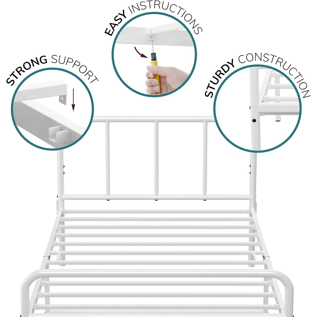 Extra Strong Single Metal Bed Frame with Rounded Head and Foot Board In White - Improved