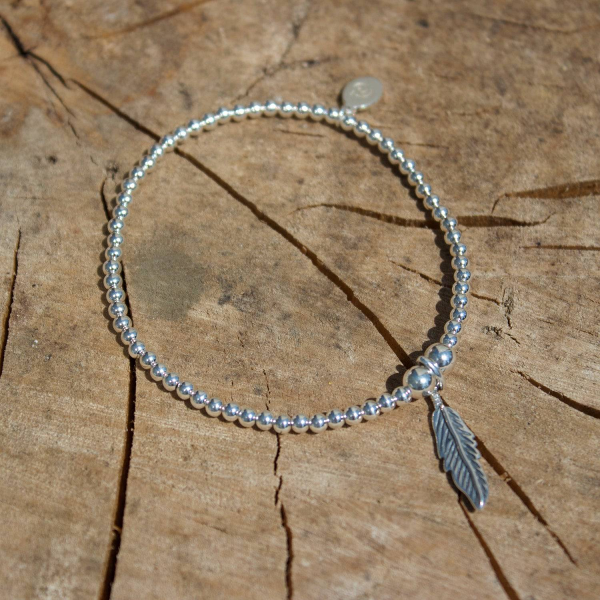 BuytoGive | Buy now | Feather on Silver Ball Bead Bracelet