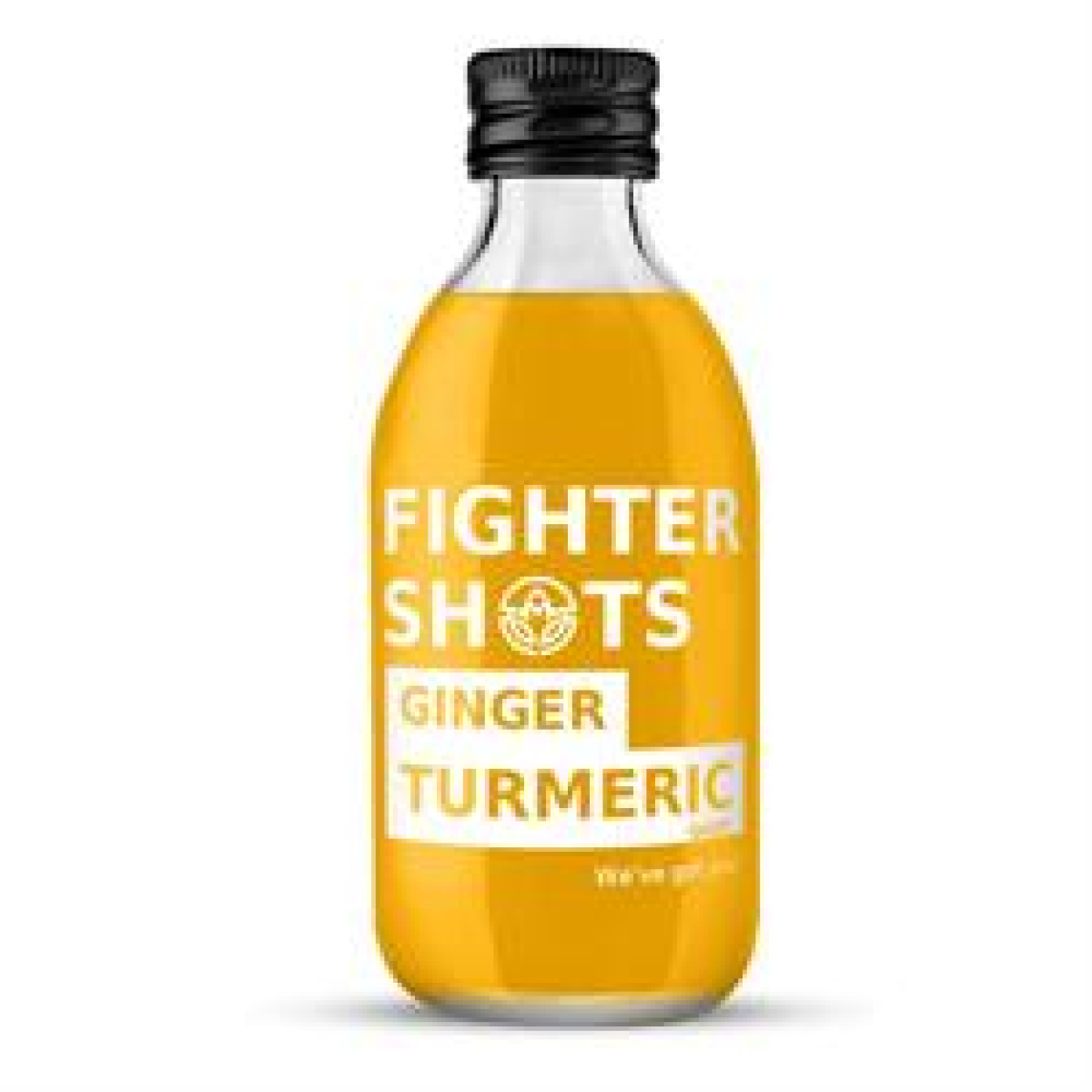 Fighter Shots' 250ml Turmeric + Ginger Dosing Bottle combines 8g of raw organic turmeric and ginger, delivering 150mg of curcumin to help reduce joint inflammations and accelerate workout recovery.