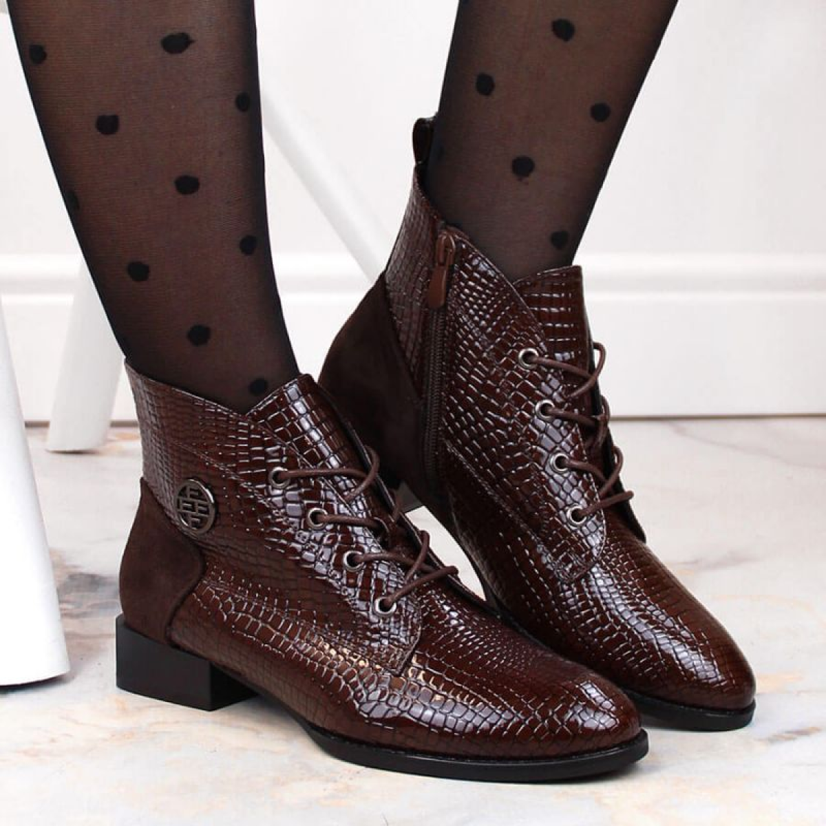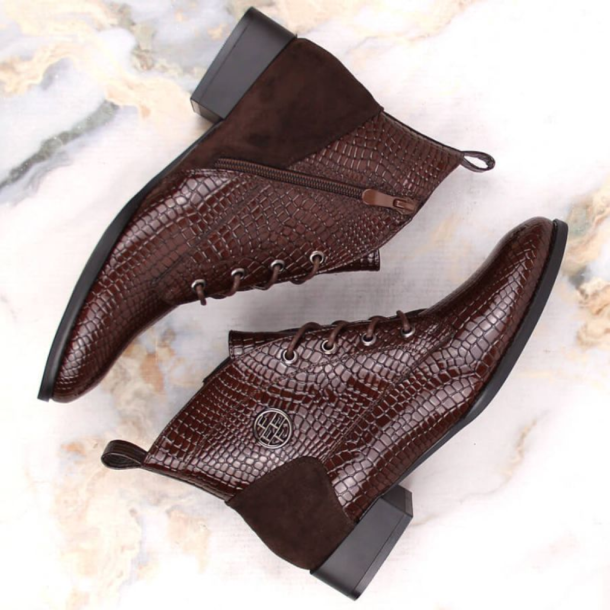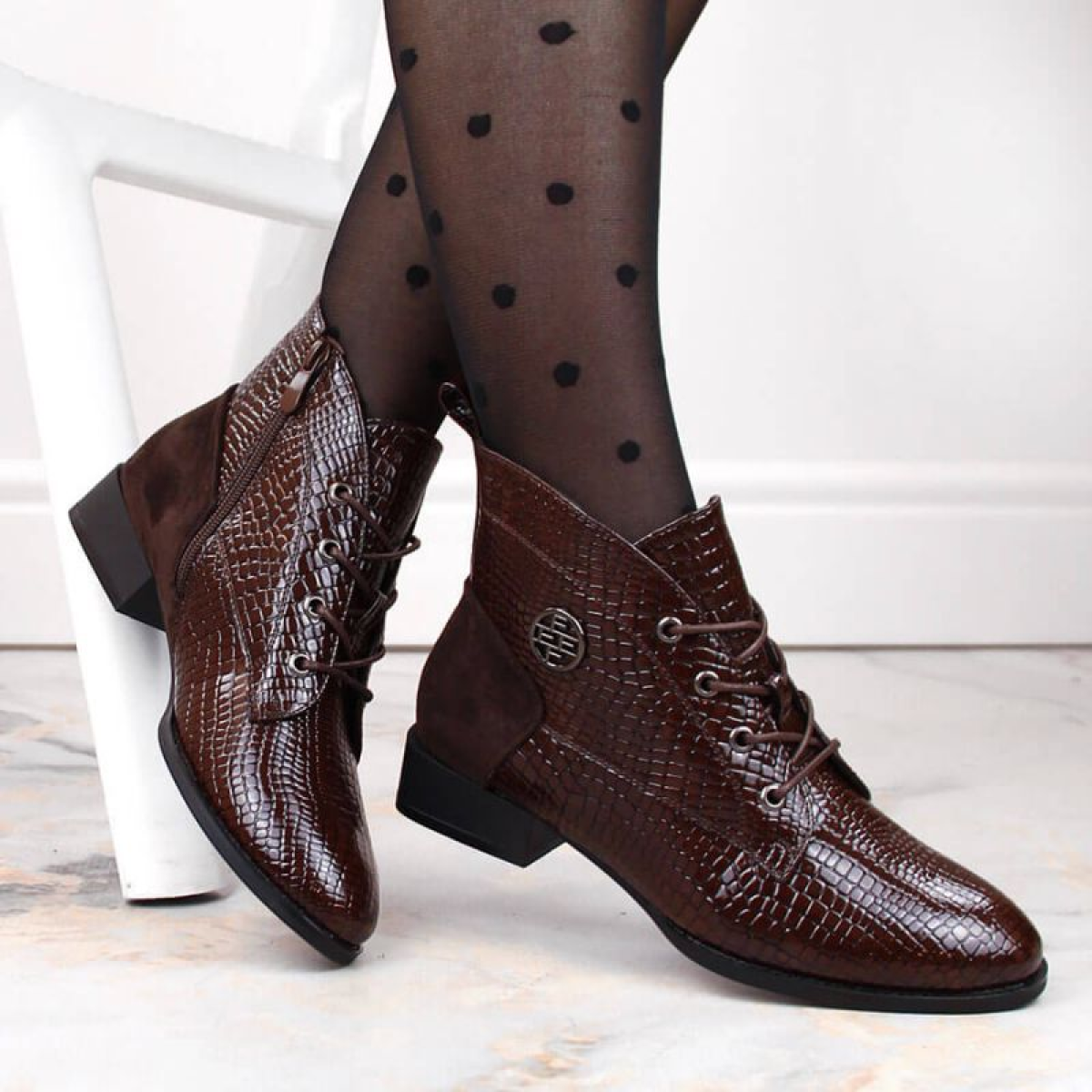 Filippo W PAW478B brown patent leather ankle boots with insulated crocodile skin