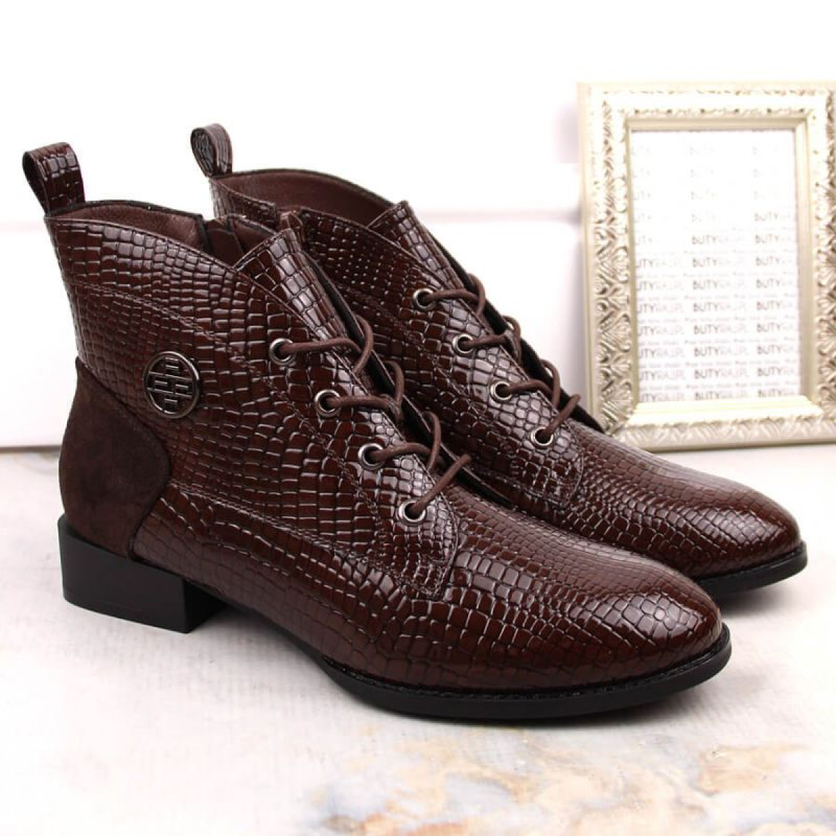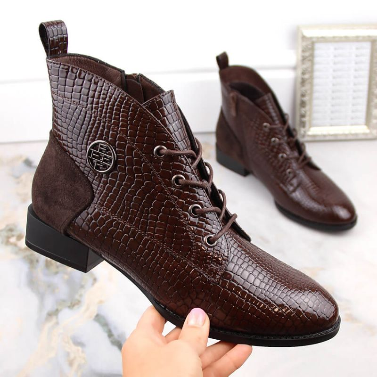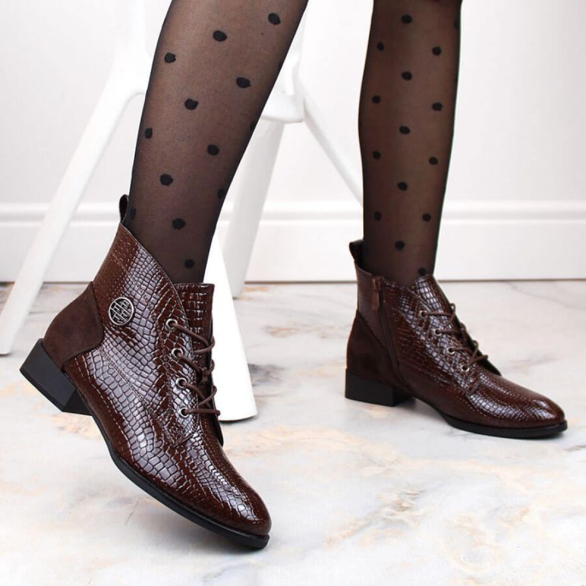 Filippo W PAW478B brown patent leather ankle boots with insulated crocodile skin