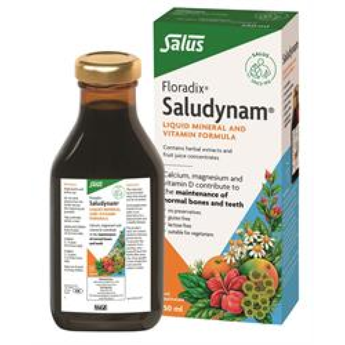 Calcium, magnesium and zinc formula with vitamin D. Build strong bones for the future. For strong bones, muscles and teeth everybody needs calcium, magnesium, zinc and vitamin D. To safeguard these esssential bone strengthening elements start building for the future now! Saludynam is a pleasant tasting, easily absorped multi mineral supplement which may help promote inner strength for an active life! Suitable for vegetarians.