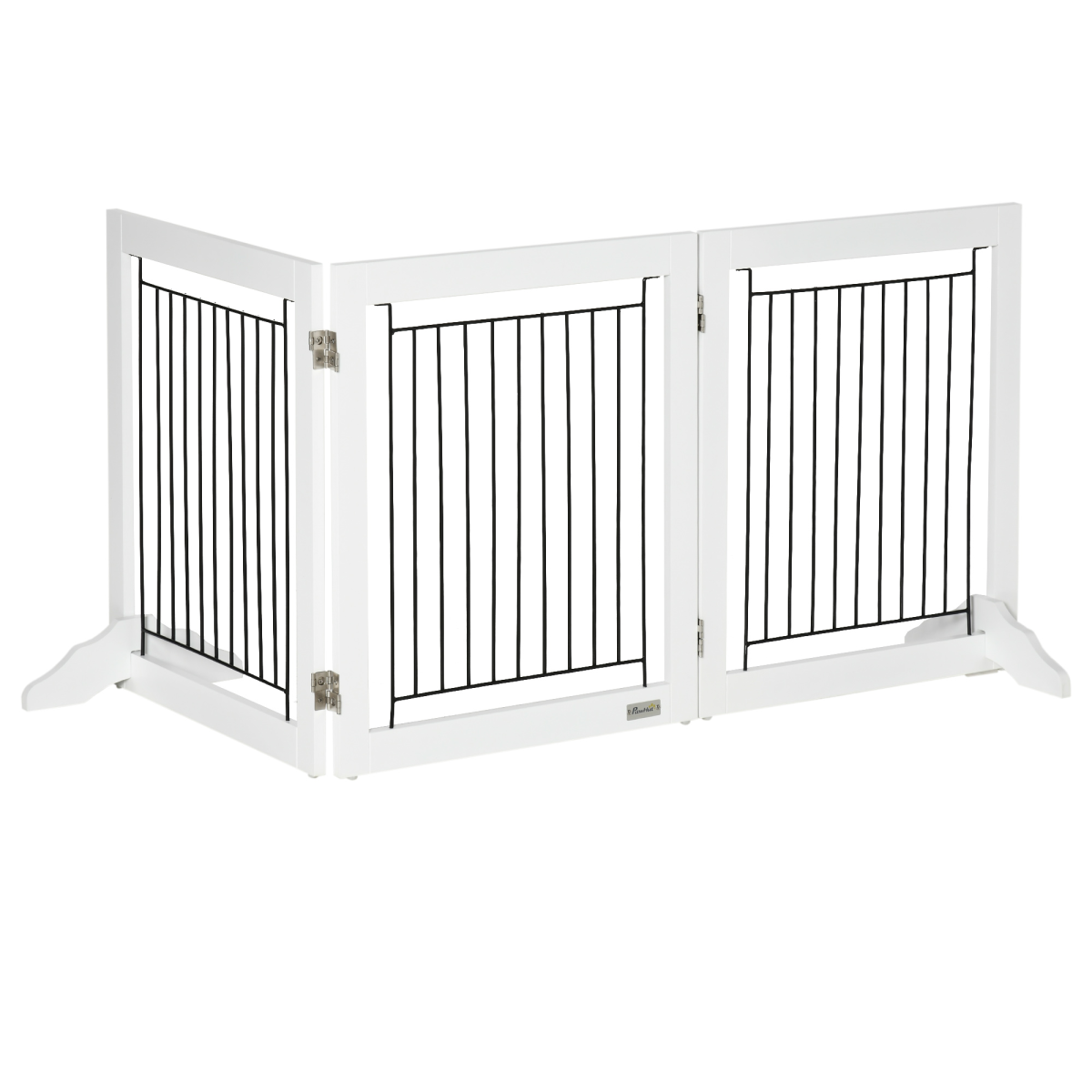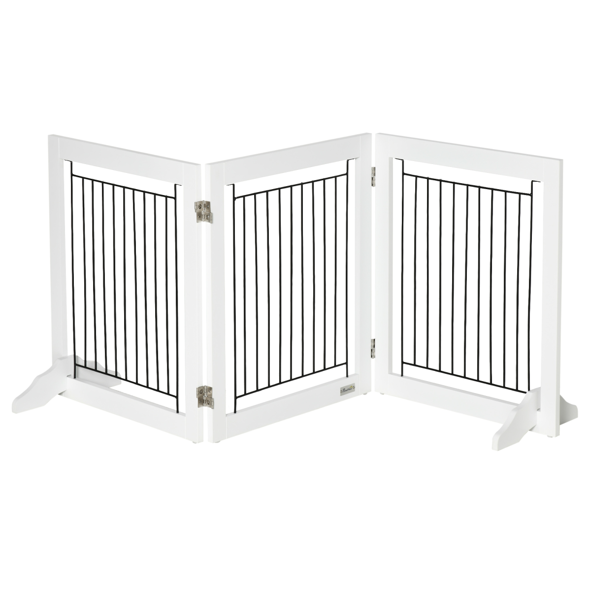 Foldable Dog Gate Freestanding Wooden Pet Barrier w/ 3 Panels, 2 Support Feet