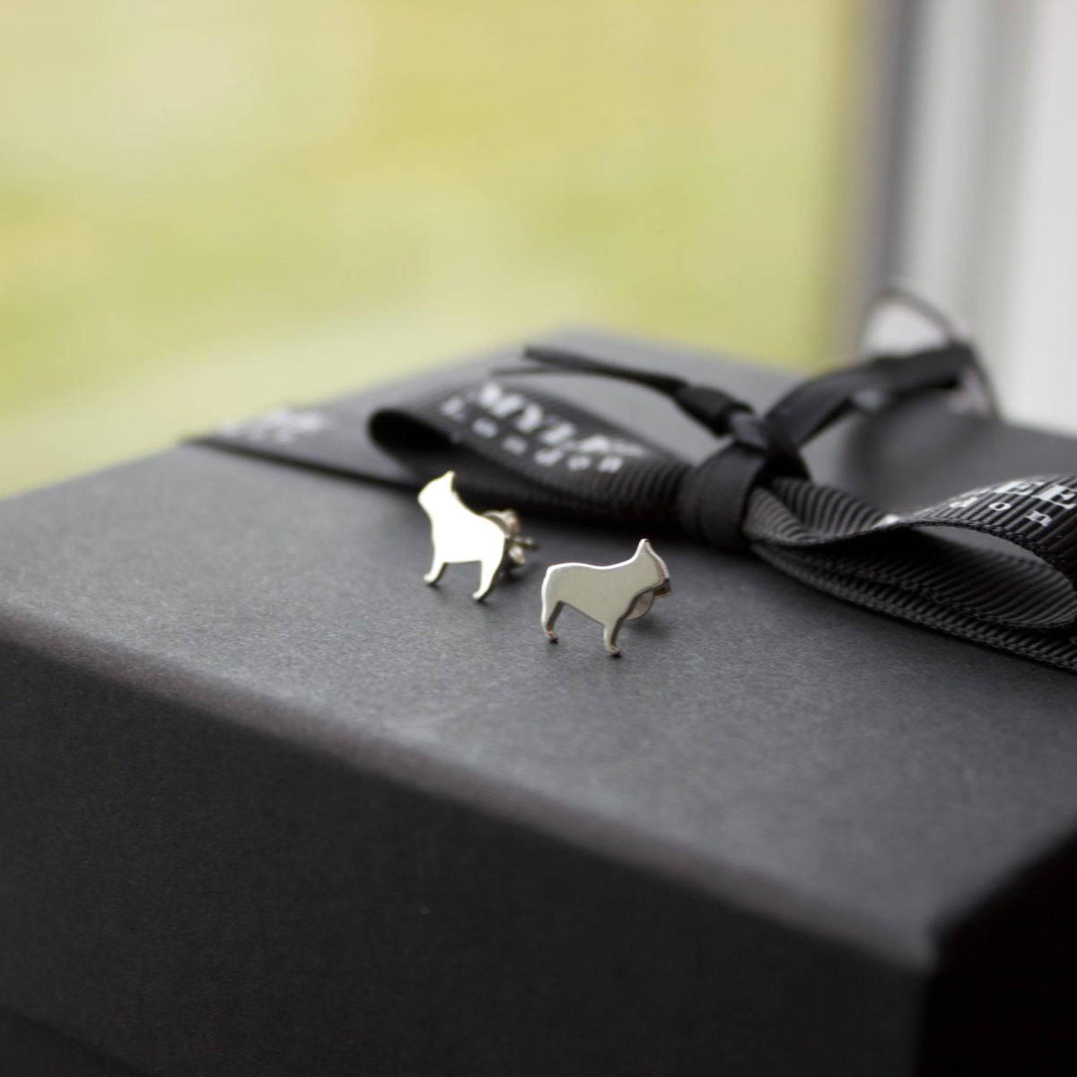 Celebrate your love for Frenchie's with our French Bulldog stud earrings, a beautifully crafted keepsake designed for dog lovers. These high-quality 925 sterling silver studs feature the distinctive silhouette of these adorable dogs and are guaranteed to brighten your day. A perfect gift for French Bulldog owners, dog lovers, or anyone who appreciates sterling silver jewellery.