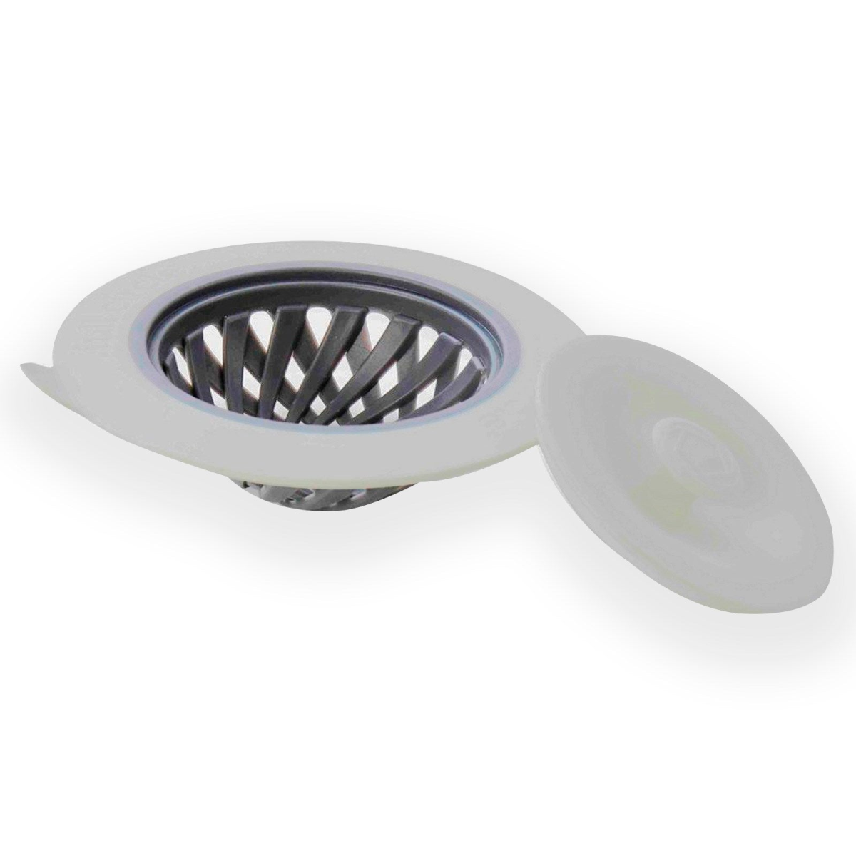 Full Circle, Sinksational, Sink Strainer with Pop-Out Stopper, Gray & White, 1 Strainer & 1 Stopper