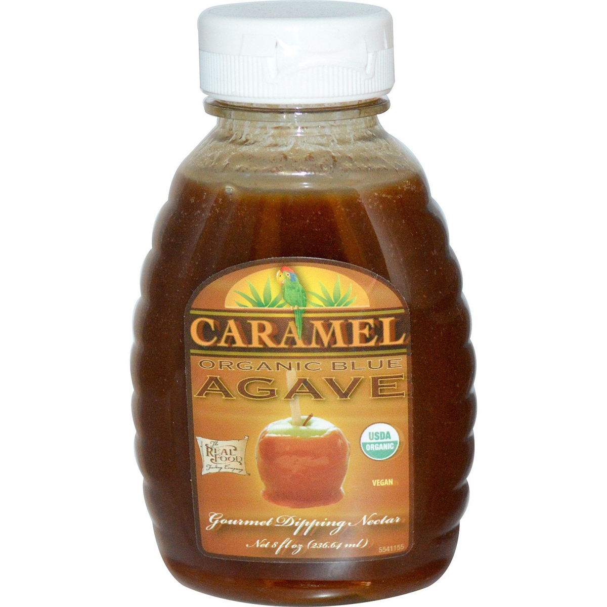 The Real Food Trading Company USDA Vegan Certified by ODAFF Caramel Agave Gourmet Dipping Nectar contains blue agave and Rice milk for a decadent creamy taste. Agave nectar contains inulins, has a low glycemic index and releases energy gradually. Caramel Agave Gourmet Dipping Nectar contains no added sugar, corn syrup, artificial sweeteners, preservatives, water or thickening agents. Caramel Agave Nectar is a low GI alternative to caramel syrup.
