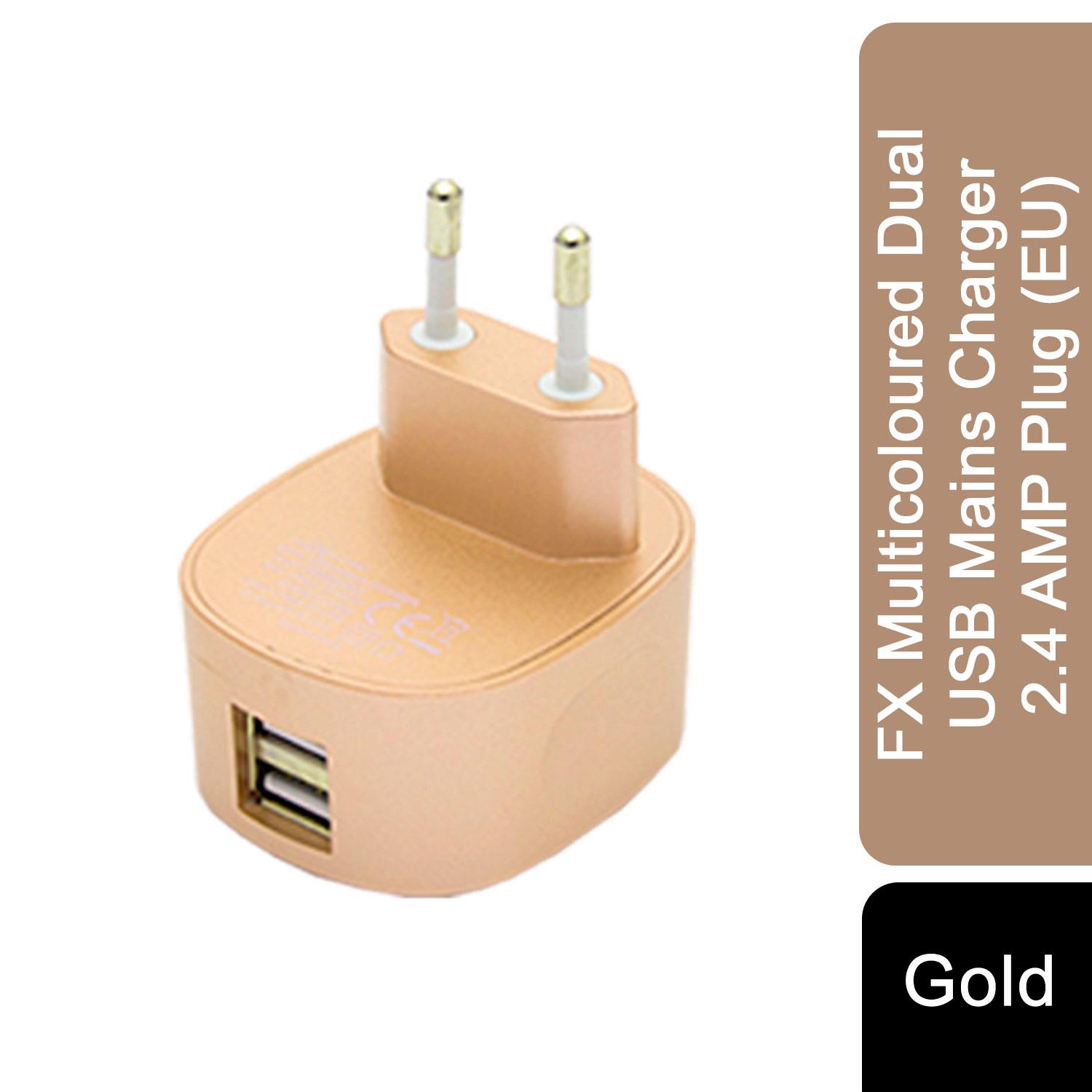 FX Multicoloured Dual USB Mains Charger 2.4 AMP Plug (EU), Gold
