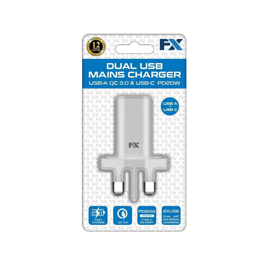 FX USB-C Mains Charger, PD20W Fast & Universal Compatible, White