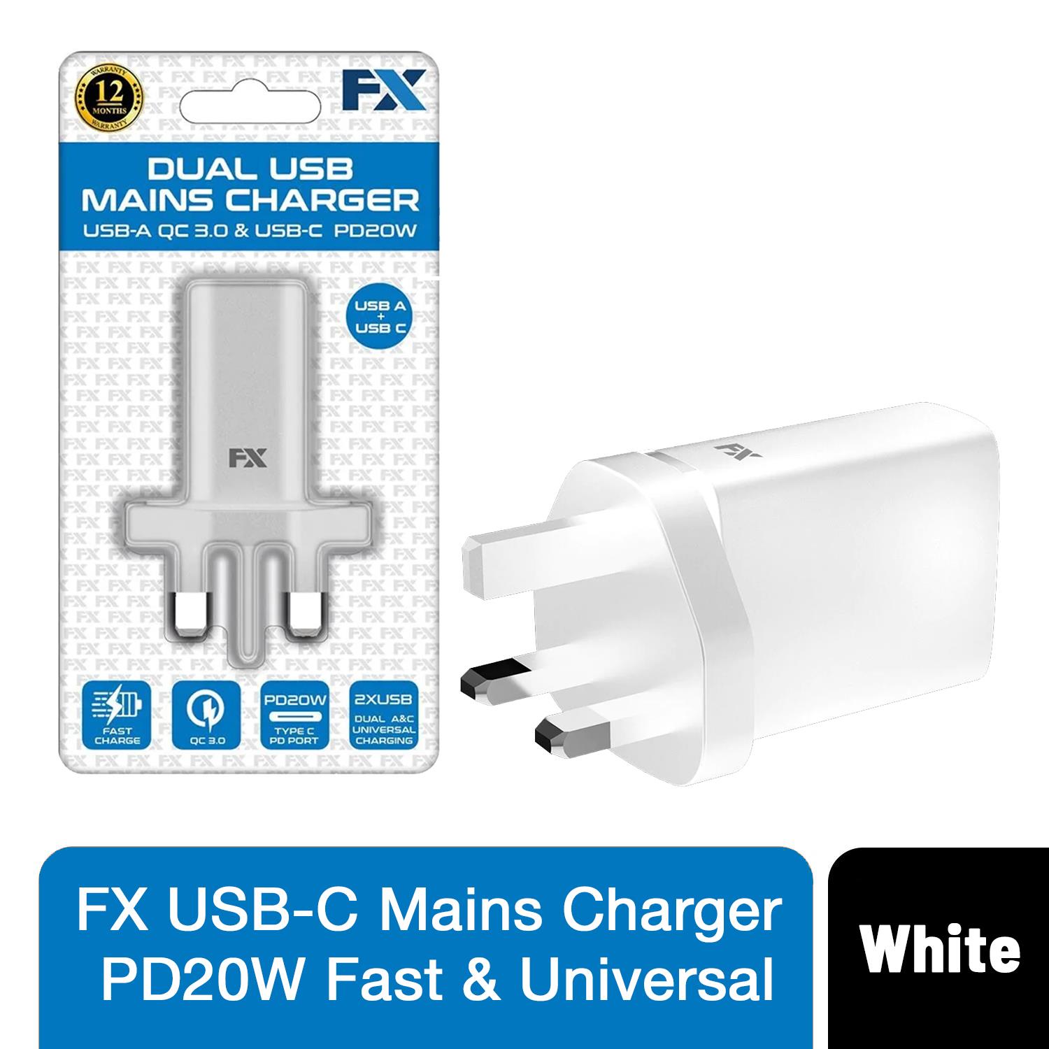FX USB-C Mains Charger, PD20W Fast & Universal Compatible, White