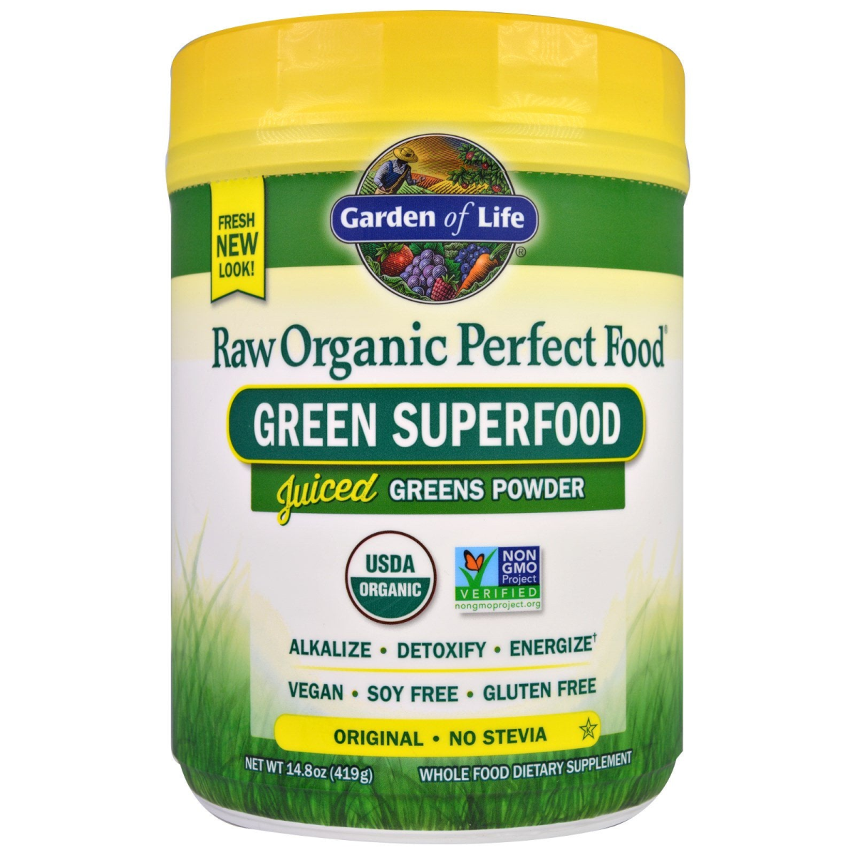 Juiced Greens Powder USDA Non GMO Project Verified Alkalize Detoxify Energize Vegan Soy Free Gluten Free No Stevia Kosher Whole Food Dietary Supplement Certified B Corporation Certified by QCS Certified Vegan Certified NSF Gluten-Free Dairy Free Grasses Grown in Our Family Farm in Utah Raw Perfect Food Green Superfood grass juice powders are naturally energizing and powder-packed with chlorophyll, vitamins and minerals. Juicing our greens super-concentrates them. One serving of Raw Perfect Food instantly delivers 6x more nutrient density than whole leaf grass powder. Raw Perfect Food is packed with 40 nutrient-dense greens, sprouts, fruits & veggies, plus live probiotics and enzymes. Certified Vegan- Vegan. org. Grass Juices Fresh harvested, juiced and low-temperature dried to lock in nutrition Certified Gluten-Free by NSF USDA Matters Farmed without the use of toxic pesticides or herbicides Non-GMO Verified Independent third part verification Non GMO Project Verified Raw Raw Whole Food Heat and processing can affect nutrients No Junk Gluten, Soy & Dairy Free, No added sugars, no artificial flavors or sweeteners Soy Free Dairy Free